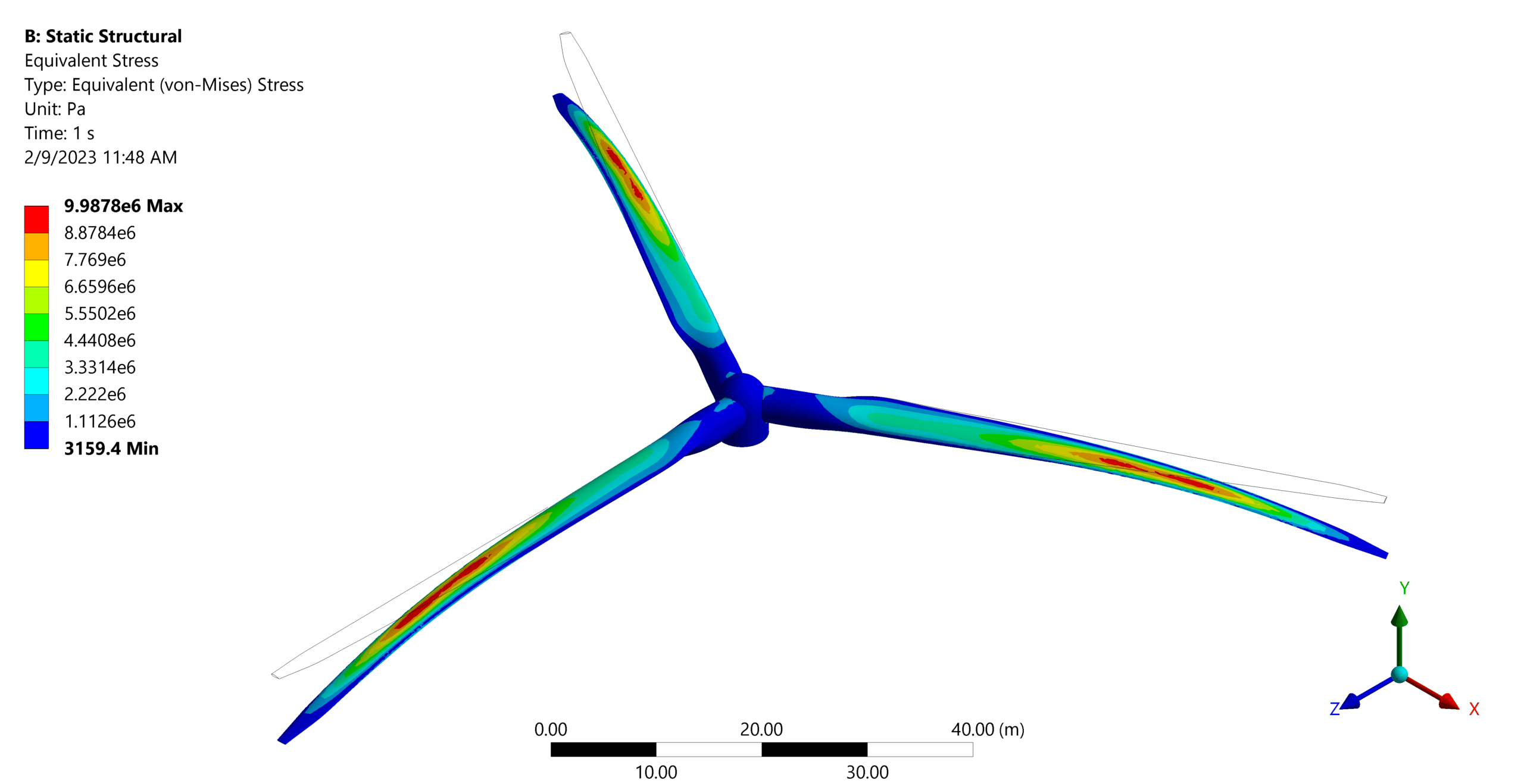 I enjoyed going through the insights provided by the simulation on the HAWT turbine. The level of detail describing the deformation at the tips of the blades and the bending stress was commendable. Would you happen to have more detailed visualization materials or reports showcasing this deformation and stress distribution on the turbine?