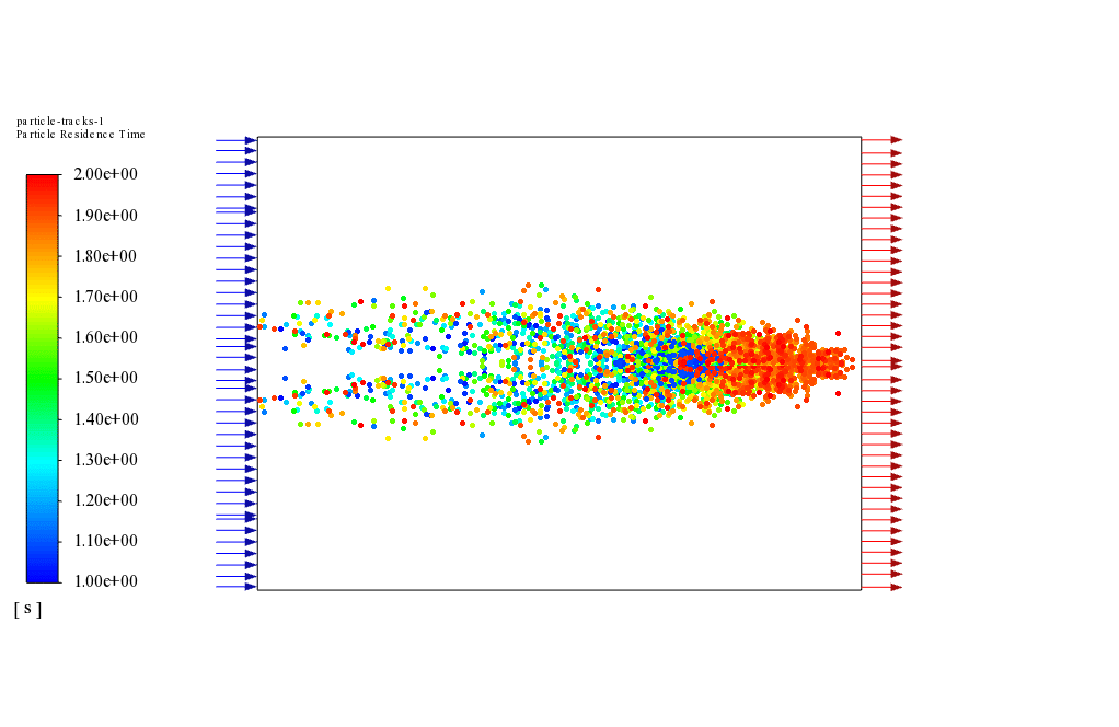 In this simulation, particles are initially introduced at a specific velocity and then interact with the continuous airflow in the chamber. Over time, the particles disperse throughout the chamber-track results show the particle paths and how the airflow influences their trajectories. Eventually, the particles are directed towards the outlet of the chamber due to the airflow’s velocity pattern and gravitational forces acting on them. During the simulation, visual results show the dispersion pattern and particle concentration in the chamber at different timestamps, providing insights into the particle’s evolution.