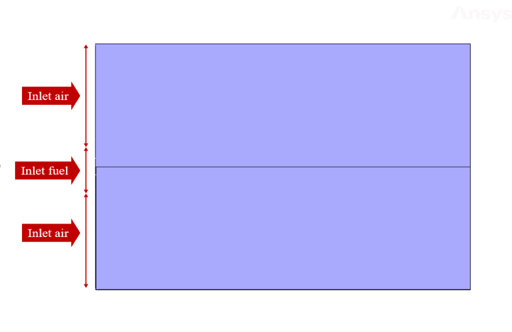 The present geometry is designed in a 2D model via Design Modeler. The computational zone is the interior of a chamber that includes an airflow inlet and a fuel inlet.