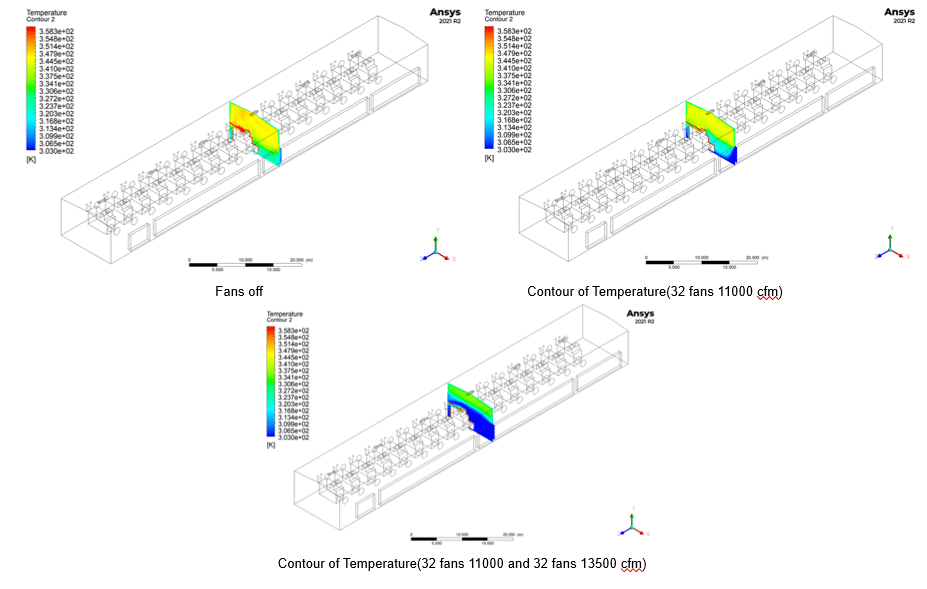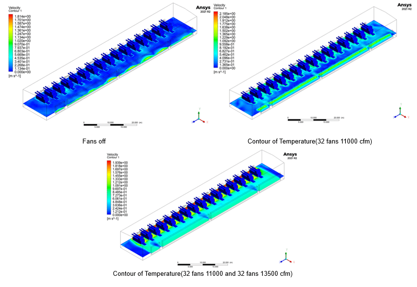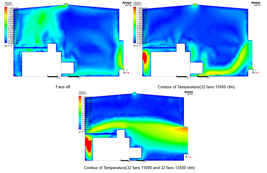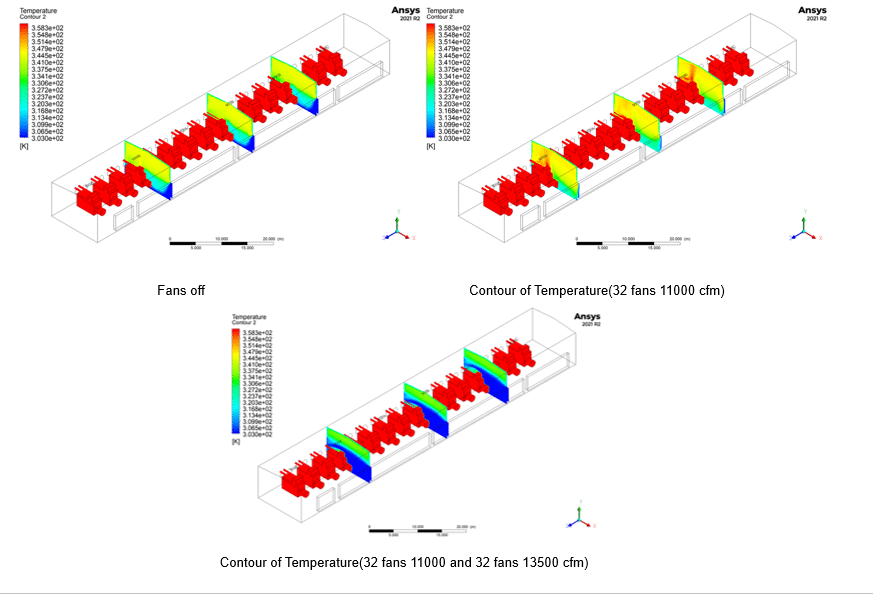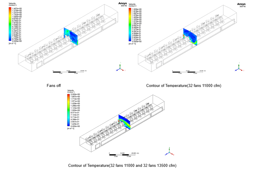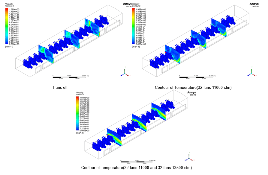 Great in-depth analysis on the generator room ventilation. The inclusion of both small and large-volume fans really demonstrates the improvement in air circulation and temperature control. Did the second simulation involving 32 fans at 11,000 CFM each also look at changes in humidity or just temperature?