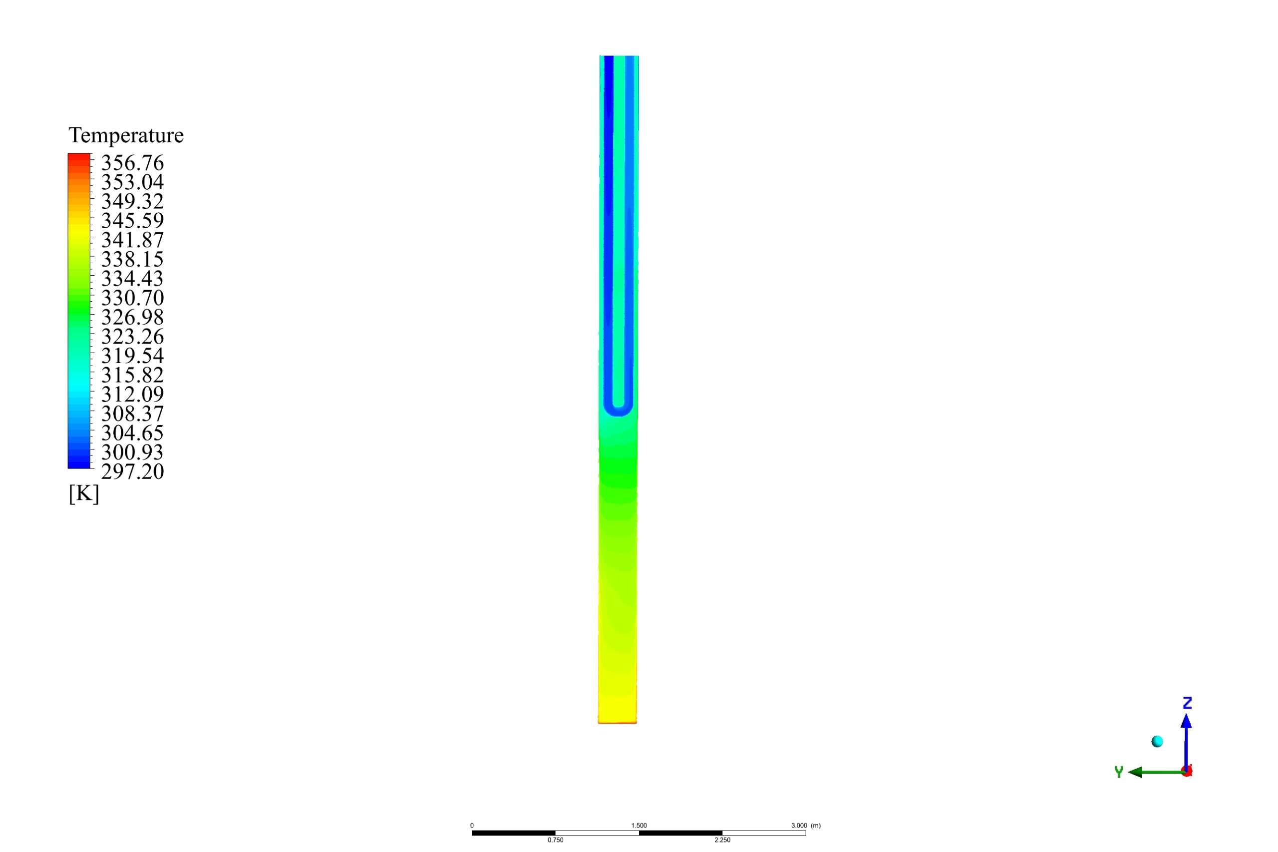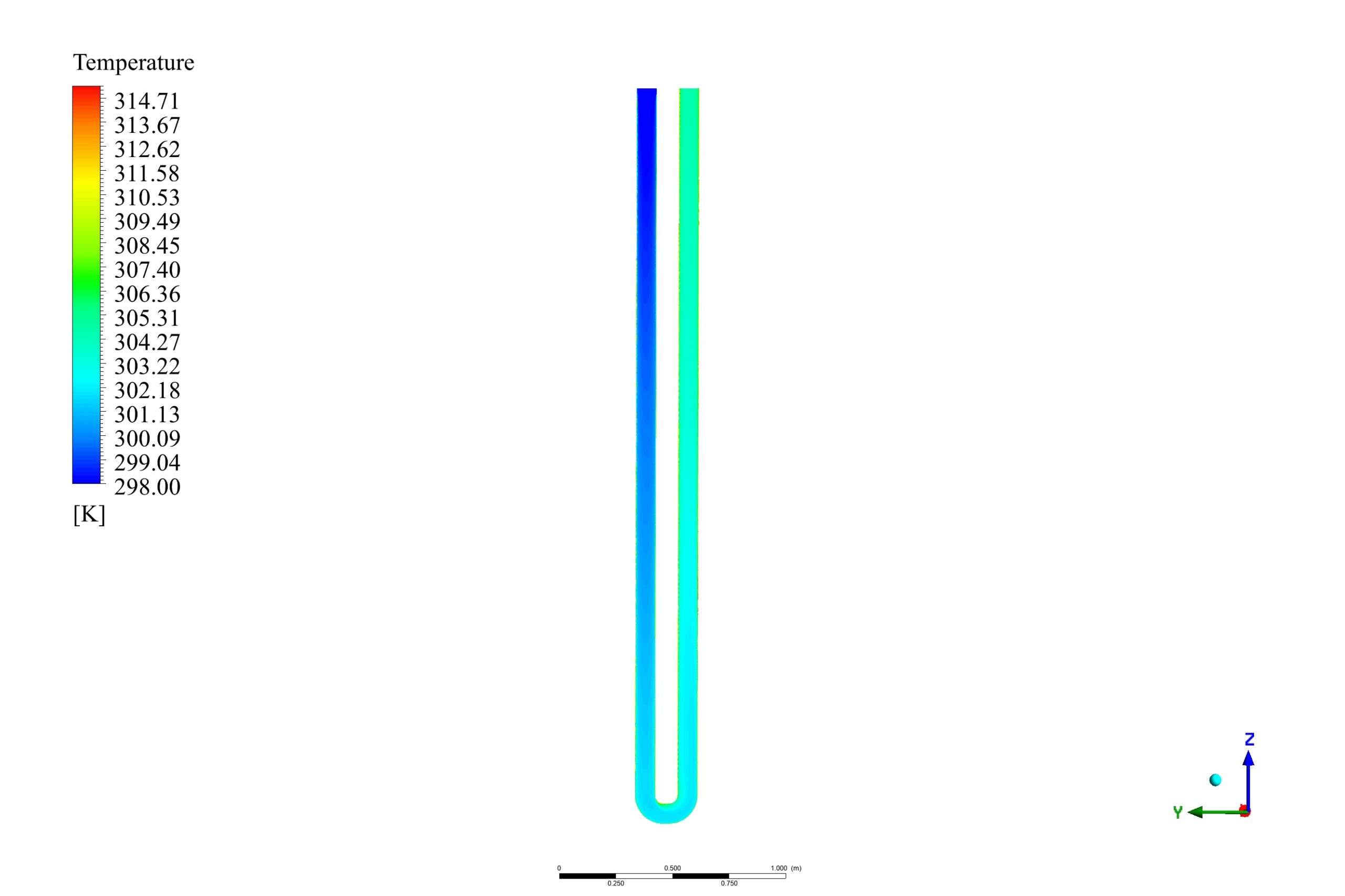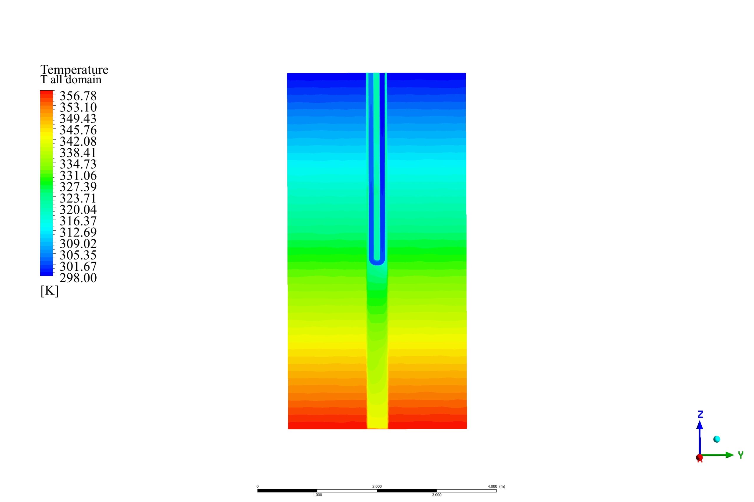 Thank you for your compliment on our geothermal reservoir simulation! The linear temperature gradient in the solid zone is a crucial factor for mimicking the natural geothermal gradient found in geological formations. This setup allows the simulation of increasing temperature with depth, which is essential for understanding the efficiency of heat extraction. In our model, the temperature changes establish a convection-driven process inside the U-tube and the borehole. It causes cooler water at the top of the reservoir to sink and absorb heat as it flows downward. Consecutively, the heated water rises and transfers the heat to the working fluid inside the U-tube. The simulation results showed an increase in the outlet temperature of the tube water, indicating successful heat extraction facilitated by the established temperature gradient. The constant temperature change establishes ongoing natural convection that maximizes the heat transferred from the reservoir to the water in the U-tube, leading to efficient geothermal energy utilization.