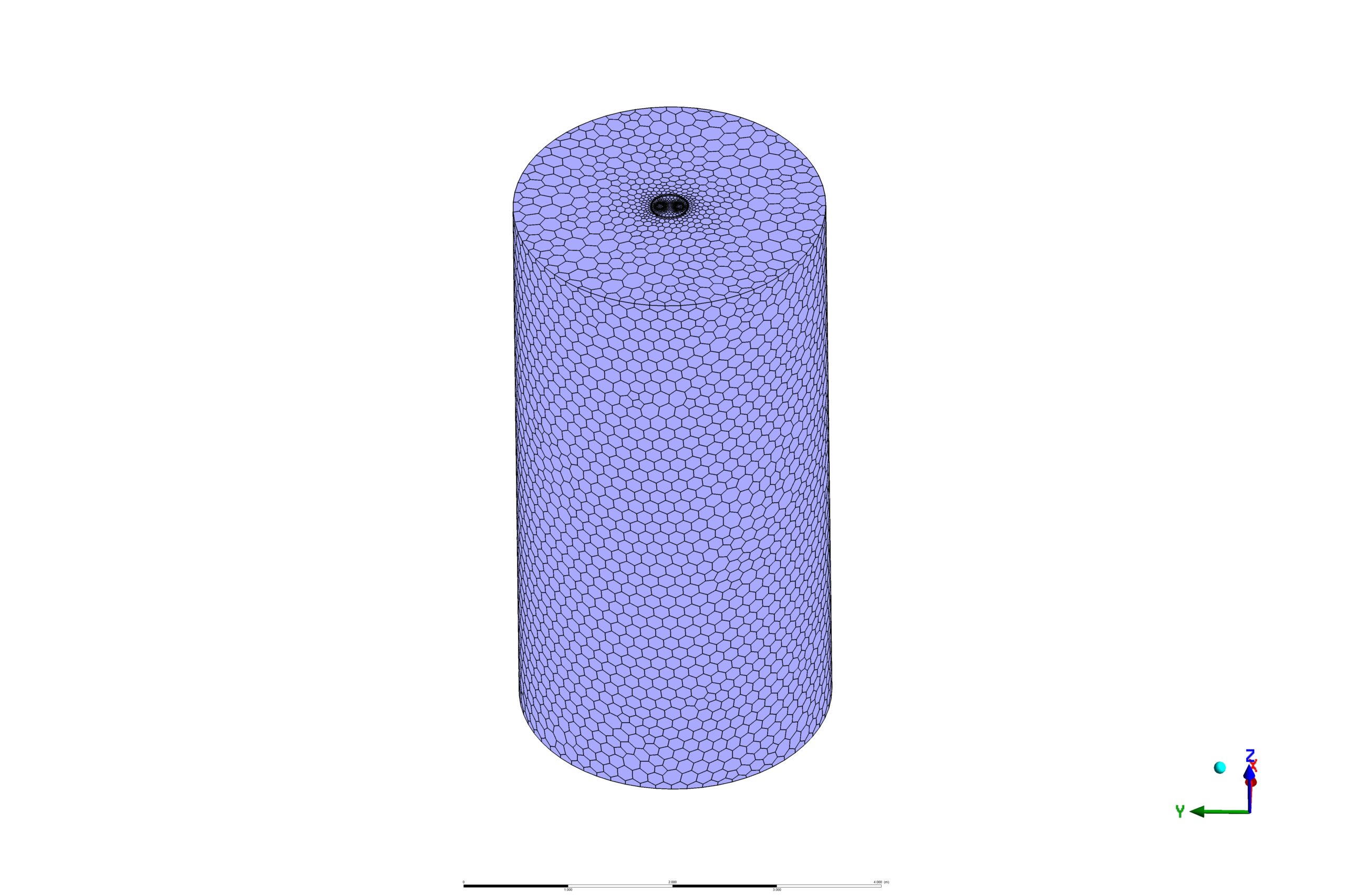 We modeled the geometry of the project using Design Modeler software. Then we meshed the model with ANSYS Meshing software. The mesh model is polyhedra, and the number of cells equals 1,749,097.