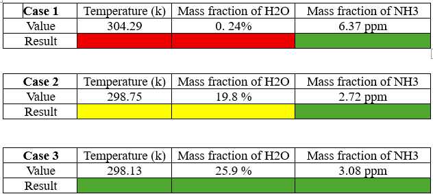 The mentioned idea was applied, and the results show an improvement in temperature and H2O mass fraction, and NH3 by 298.75K & 19.8% & 2.72ppm respectively. The humidity and ammonia fraction get in the acceptable range, but still, the temperature needs to decrease.