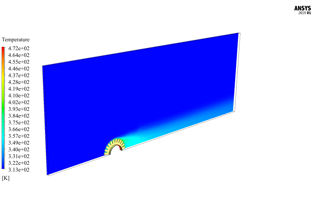 In this simulation, only part of it is modeled using the symmetric boundary condition. It is assumed that the pipe’s inner wall has a constant temperature boundary condition equal to 473.15 K.