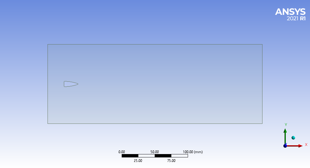 In this project, a 2D HPBT ammo in a rectangular domain is designed while the bullet’s velocity is 2850 ft/s. The Dynamic Mesh model simulates the movement of the bullet in which the elements are meshing every time step. The compressibility of the air over the bullet is modeled using the Density-Based option which uses ideal gas material to define the air properties.