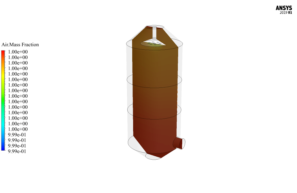 For this purpose, the Species Transport model has been used. This model deals with the solution of defined gas species transport equations. In addition, there is no need to define the chemical reaction between species.