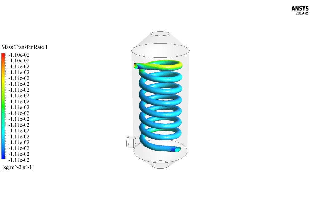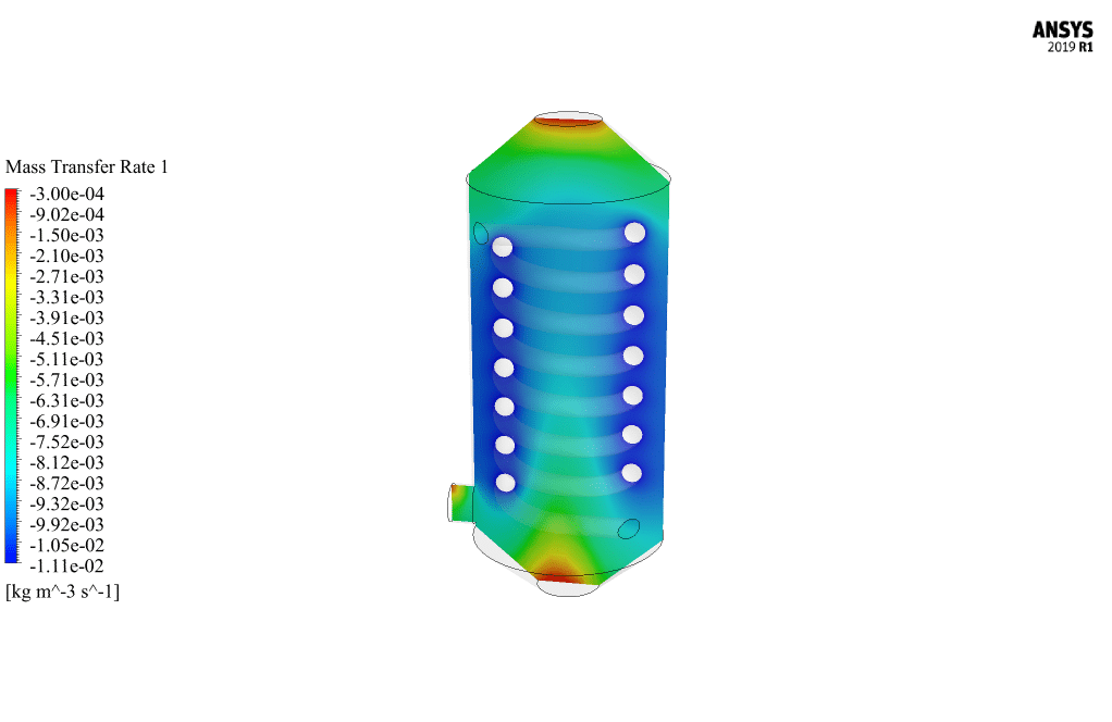 Lee’s Equations are used to model phase change processes, particularly for evaporation and condensation between the liquid and vapor phases of water. These equations take into account the rate of mass transfer based on the saturation temperature and the kinetics of phase change. In ANSYS Fluent, after setting up the Mass Transfer conditions based on VOF multiphase modeling, you define the parameters for evaporation-condensation which include data like the saturation temperature and evaporation and condensation coefficients. During solving in Fluent, the software automatically accounts for these effects where the temperature gradient meets the criteria for condensation or evaporation. It is great to see that the HDH system simulation provides accurate visualizations of the phase change phenomena happening due to these complex interactions.