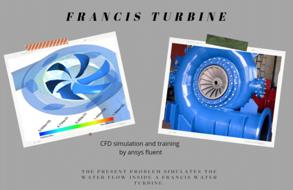 Problem number 6 simulates the water flow inside a Francis water turbine. A water turbine is a turbomachinery that converts kinetic energy from water flow or potential energy from water height differences into rotational motion. Francis turbines are one of the types of water turbines that have the ability to use both kinetic and potential energy for power generation at the same time due to the location of their blades. In project number 7, the water flow passing over the Kaplan turbine is investigated. The Kaplan turbine rotates at 3300 rpm and sucks the water in. RNG k-epsilon model is exploited to solve turbulent flow equations. It should be noted that the MRF (Frame Motion) option has been activated to model the rotation of the turbine.