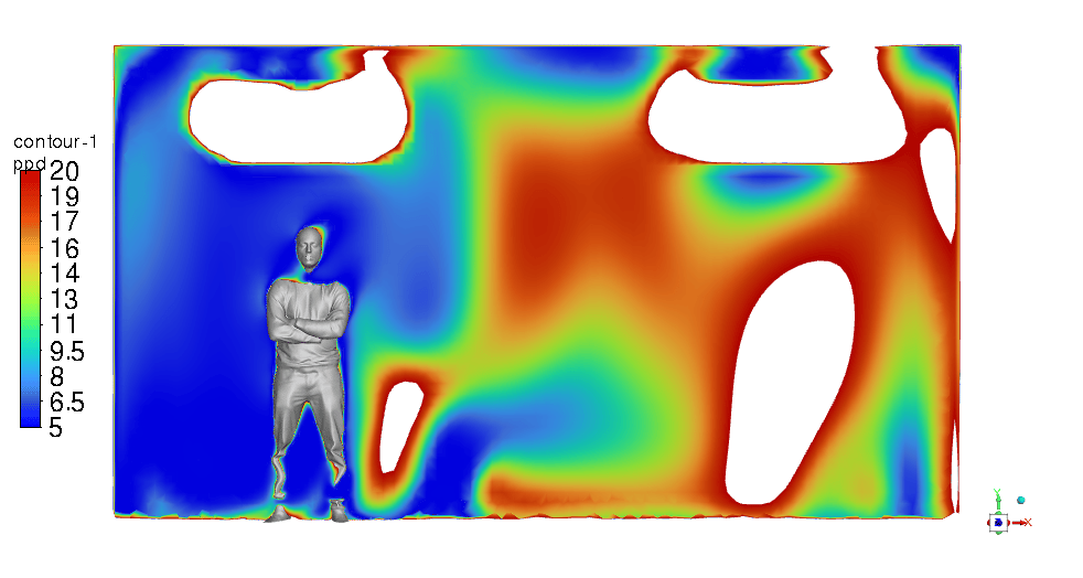Therefore, Although we expected to reduce the particles’ residence time (which will be determined in the following), the thermal comfort condition became poor in contrast with the previous design.