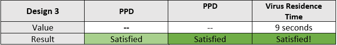 Design #3 has shown promising results in fulfilling both thermal comfort and infection control requirements, as indicated by within-range PMV and PPD contours and a reduced aerosol particle residence time. The PMV and PPD ranges indicate an acceptable level of thermal comfort, while the particle residence time indicates a low risk of disease spread, even though it is slightly higher than in Design #2. These parameters must be rigorously validated through empirical testing and with reference to health and safety guidelines to ensure they are truly effective in a real-world setting.