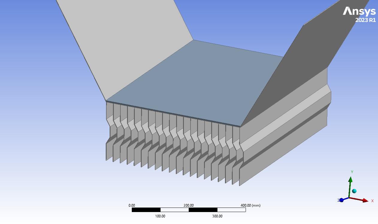 - 3-D symmetry model designed using ANSYS Design Modeler software
