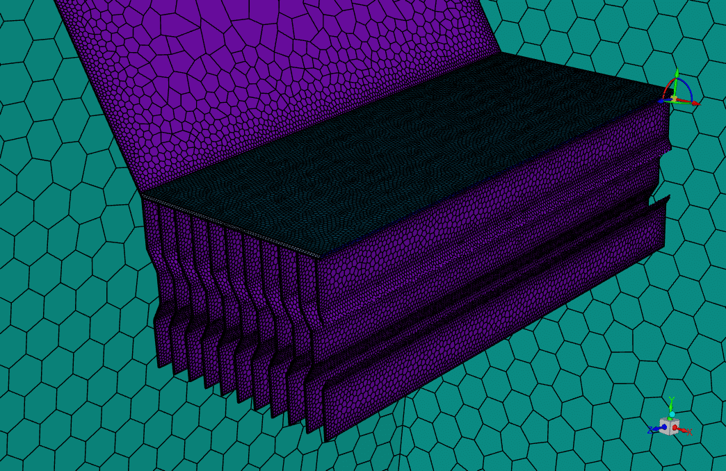 The geometries were designed in ANSYS Design Modeler and subsequently meshed using ANSYS Meshing, resulting in a total of 2,599,334 elements for each model. This mesh density ensured adequate resolution for capturing the intricate flow and heat transfer phenomena within the heat sink geometries.