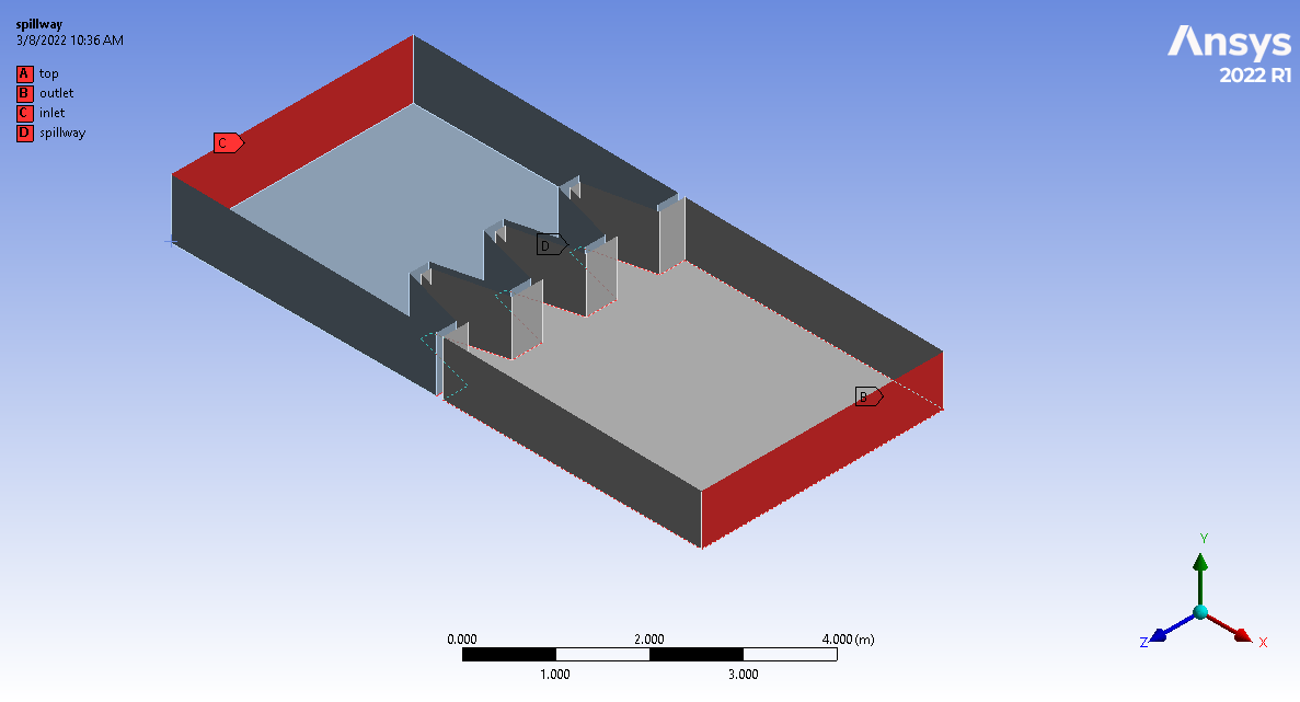 - The problem numerically simulates the Labyrinth spillway using ANSYS Fluent software.