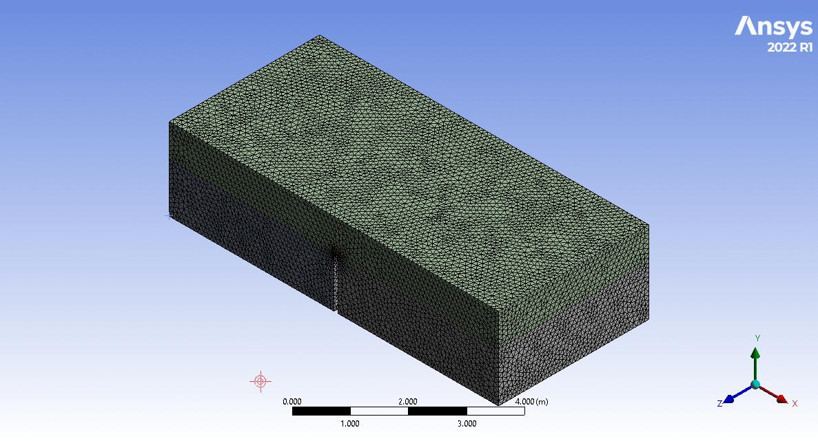 The 3D geometry was created in Design Modeler software. A labyrinth spillway is located in the middle of a channel to control the height of stored water behind it. In addition, an unstructured mesh grid was carried out using ANSYS Meshing software, and overall, 464,175 elements were generated. Still, After hiring ANSYS Fluent software’s “Make Polyhedral “capability, the number of elements has reached 99,248.