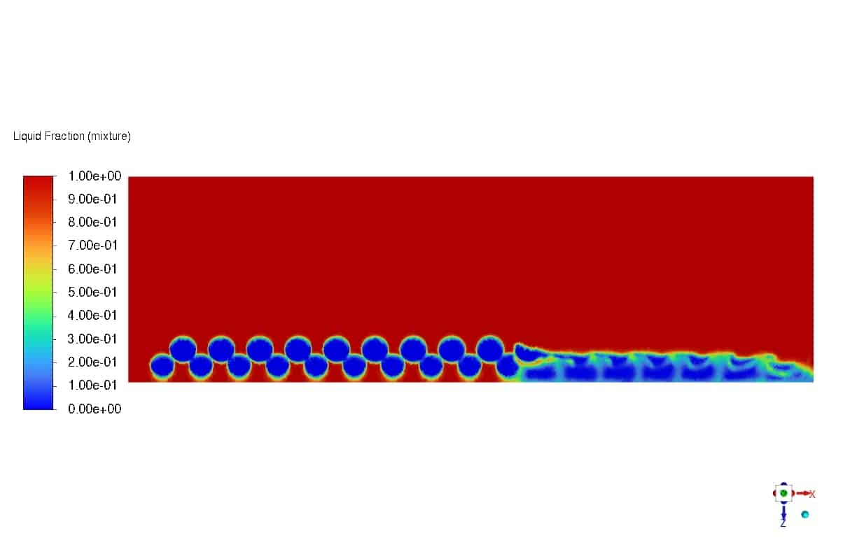 This project focuses on the numerical simulation of a laser processing technique using ANSYS Fluent software to model the selective melting of particles arranged on a substrate. The simulation investigates the behavior of bi-material particles consisting of two different material types with distinct thermal and optical properties when subjected to laser irradiation. The primary objective is understanding the melting dynamics and phase change phenomena during laser processing operations, such as selective laser melting or laser sintering.