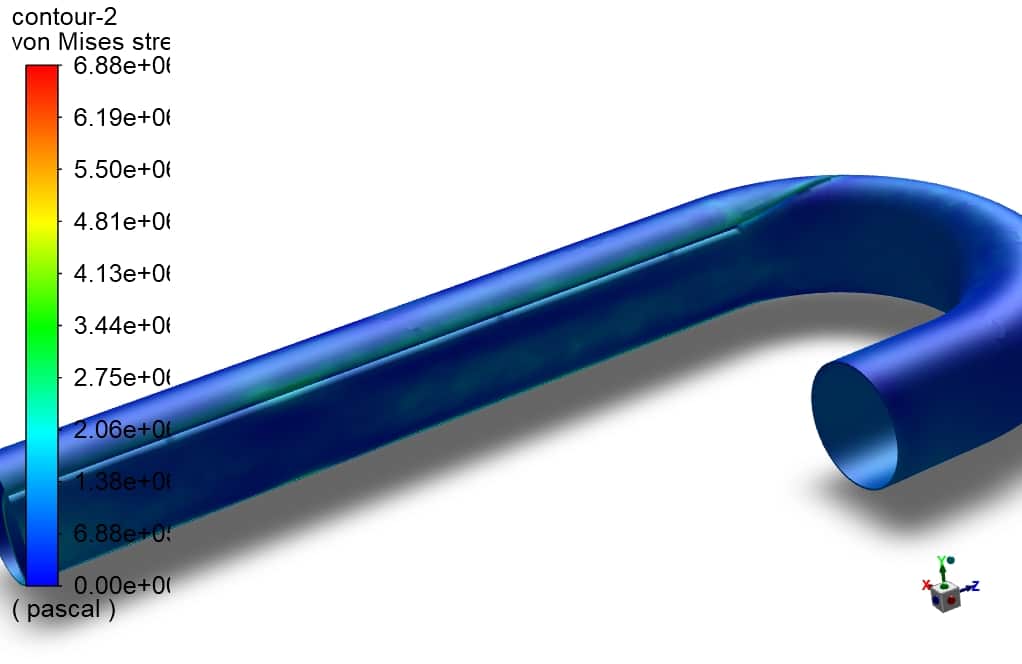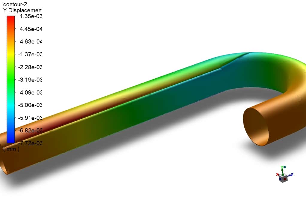 At the end of the solution process, three-dimensional contours related to wall displacements and von mises stresses are obtained. As can be seen, blood flow inside the vessel exerts stress on the vessel walls.
