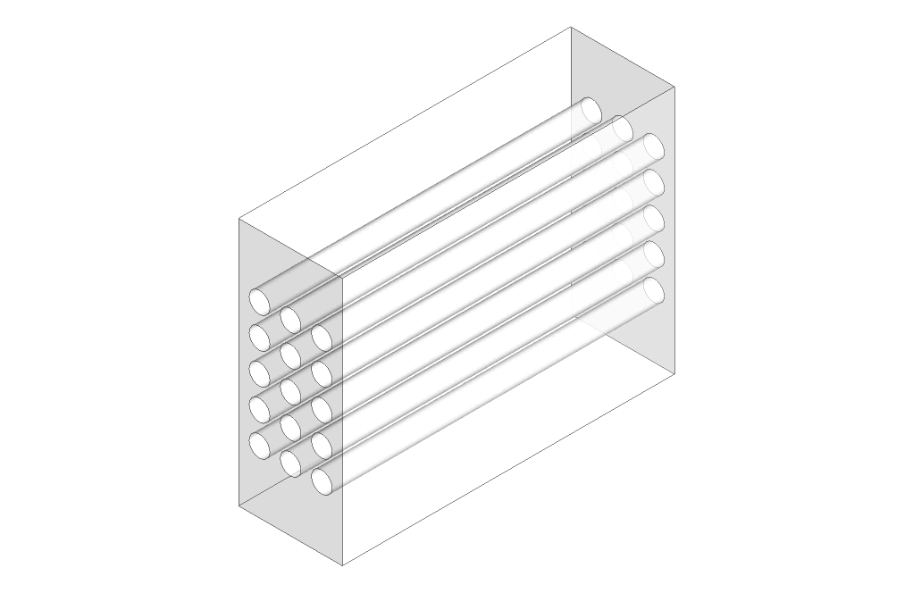 We considered a chamber inside which several rows of tubes are placed. Water vapor enters from the chamber’s top and exits from the bottom. Liquid water also passes through the internal tubes of the chamber.