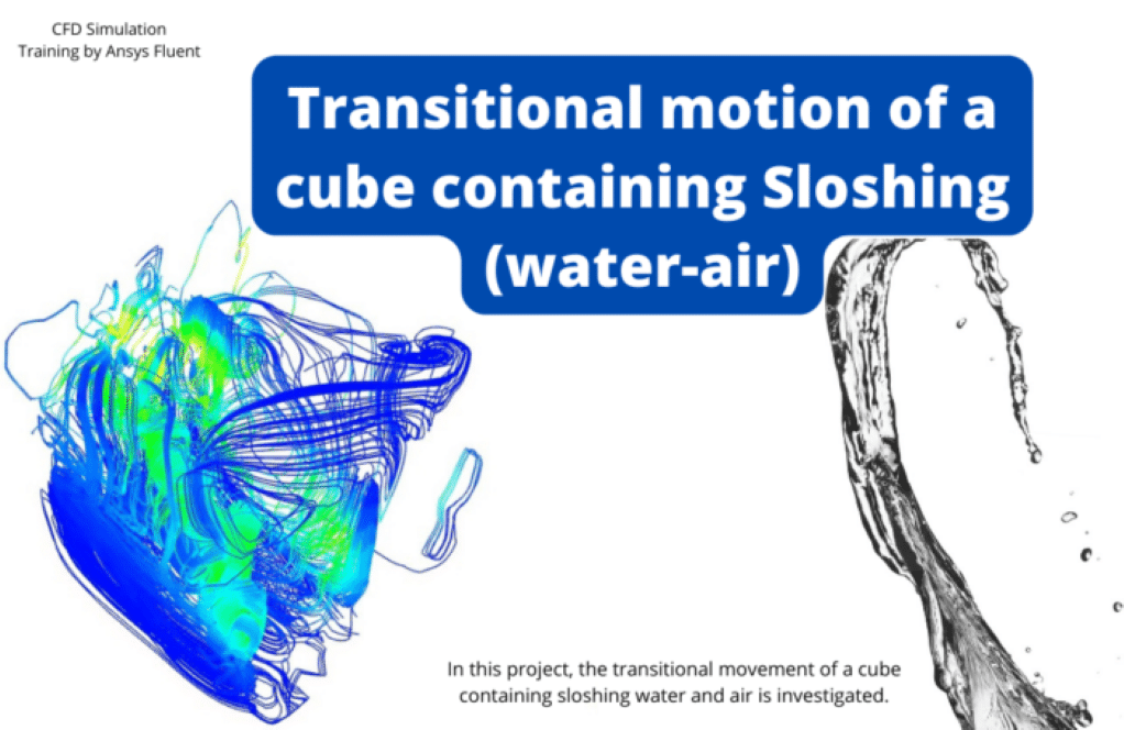 In project number 7, the transitional motion of a cube containing SLOSHING water and the air is investigated. The interaction of water and air inside the cube is modeled using the Volume of Fluid (VOF) multiphase approach. Cube accelerates in the X direction with an acceleration equal to 5 m/s2, while gravitational acceleration in the –Y direction affects the multiphase entity.