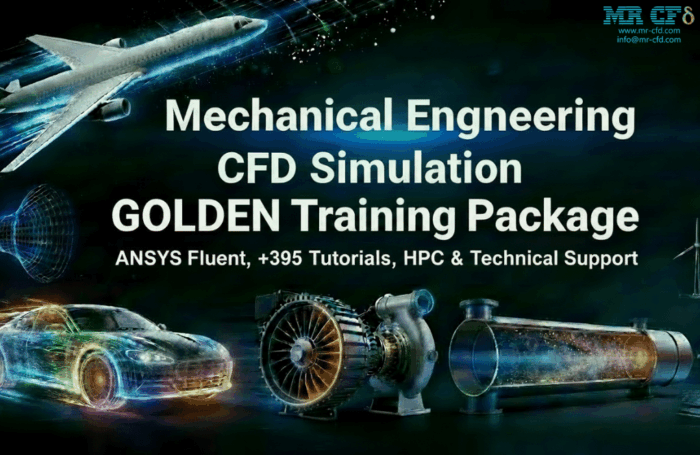 The Mechanical Engineering CFD Simulation GOLDEN Training Package by MR CFD is an advanced learning suite containing over 395 ANSYS Fluent tutorials that take users from beginner to expert in areas such as aerodynamics, turbomachinery, FSI, cavitation, multiphase flow, HVAC, acoustic analysis, wind/water turbines, pumps, nozzles, and more. Designed for universities, industrial teams, and decision-makers, it offers real industrial case studies, step-by-step projects (from geometry and meshing to solution and post-processing), over a year of structured learning material, 1-year expert technical support, and 3 months of HPC access to drastically cut onboarding time, training costs, and project risk while keeping teams aligned with state-of-the-art mechanical CFD practices.