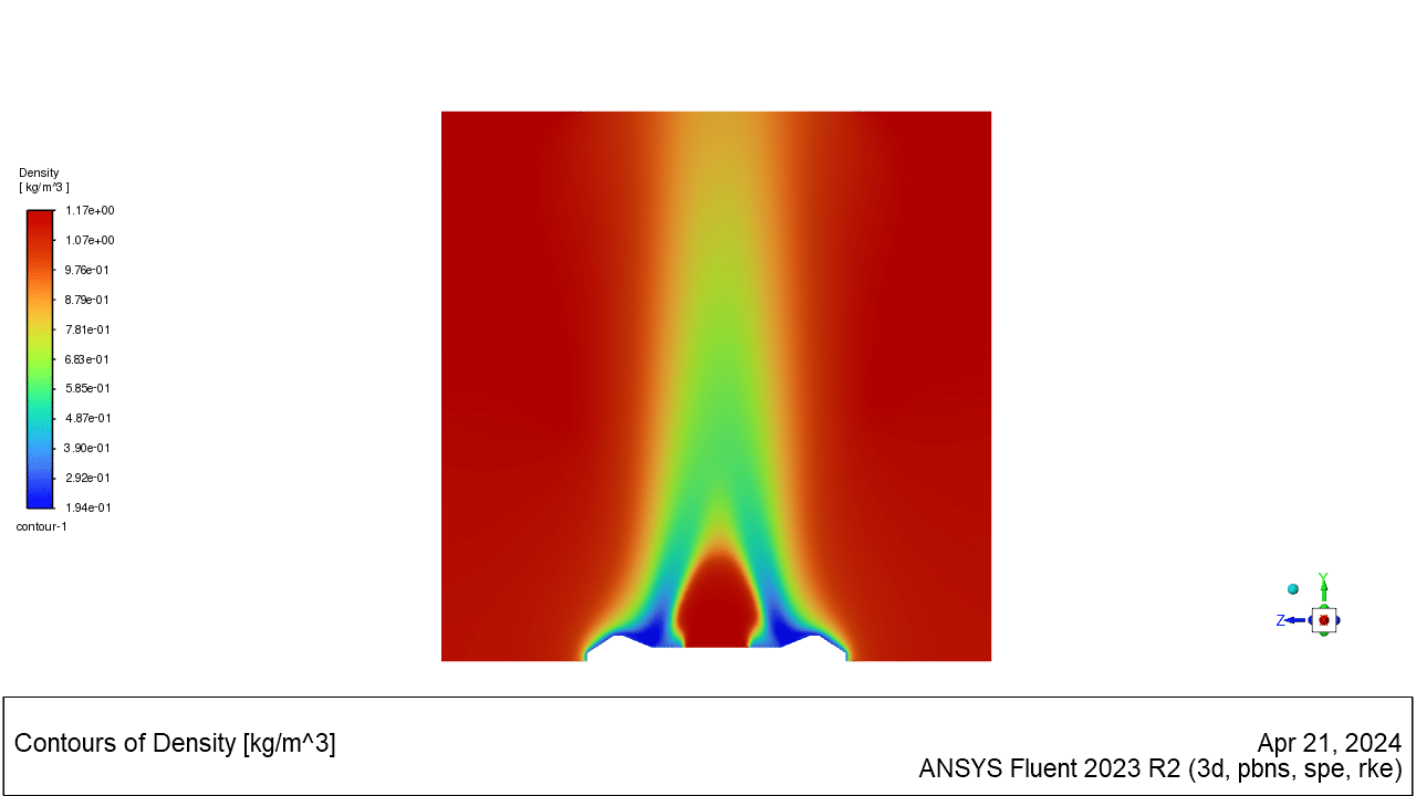 In this simulation, the k-ε Realizable model was selected for modeling the turbulence of the flow due to its accuracy in predicting the combustion process and its low computational cost. The Energy equation was also activated.