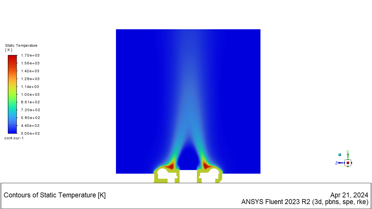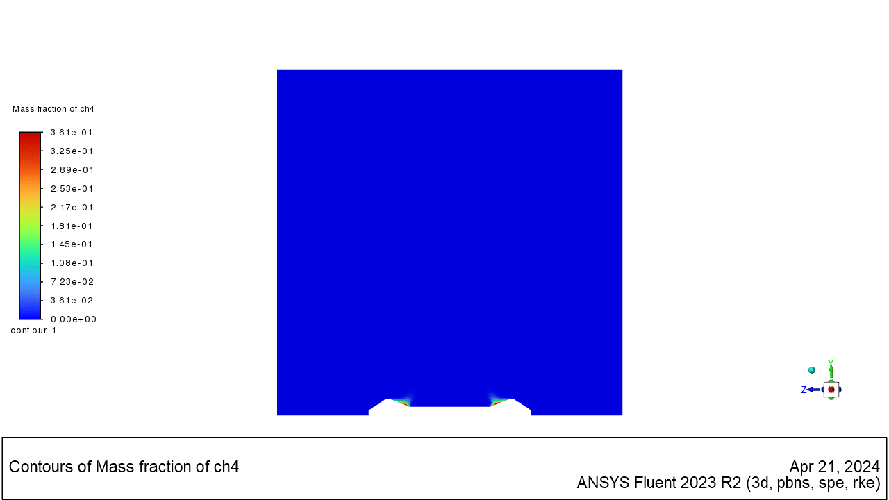 - Methane mechanism was chosen for reaction mechanism and eddy dissipation model used for turbulence-chemistry.