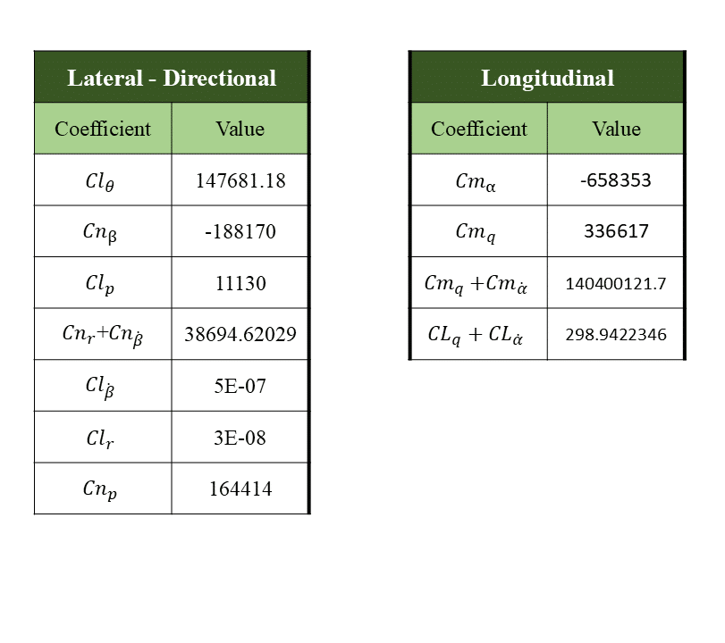 The most commonly used and important coefficients in the discussion of stability have been extracted after simulation and are given in the table below. Using these coefficients, it is possible to comment on whether a UAV is stable or not in terms of static and dynamic. Also, using the extracted data, hysteresis diagrams have been drawn, which can be understood by considering the shape and direction of rotation of these rings, whether the UAV is stable or not.