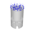 The 3D visualizations provide a comprehensive view of the distributor’s design and flow patterns. Multiple injection points at the top, represented by blue arrows, ensure even liquid distribution across the entire cross-section.