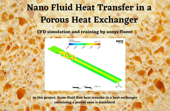 In this project, Nanofluid flow heat transfer in a porous medium heat exchanger is simulated and analyzed by ANSYS Fluent software.