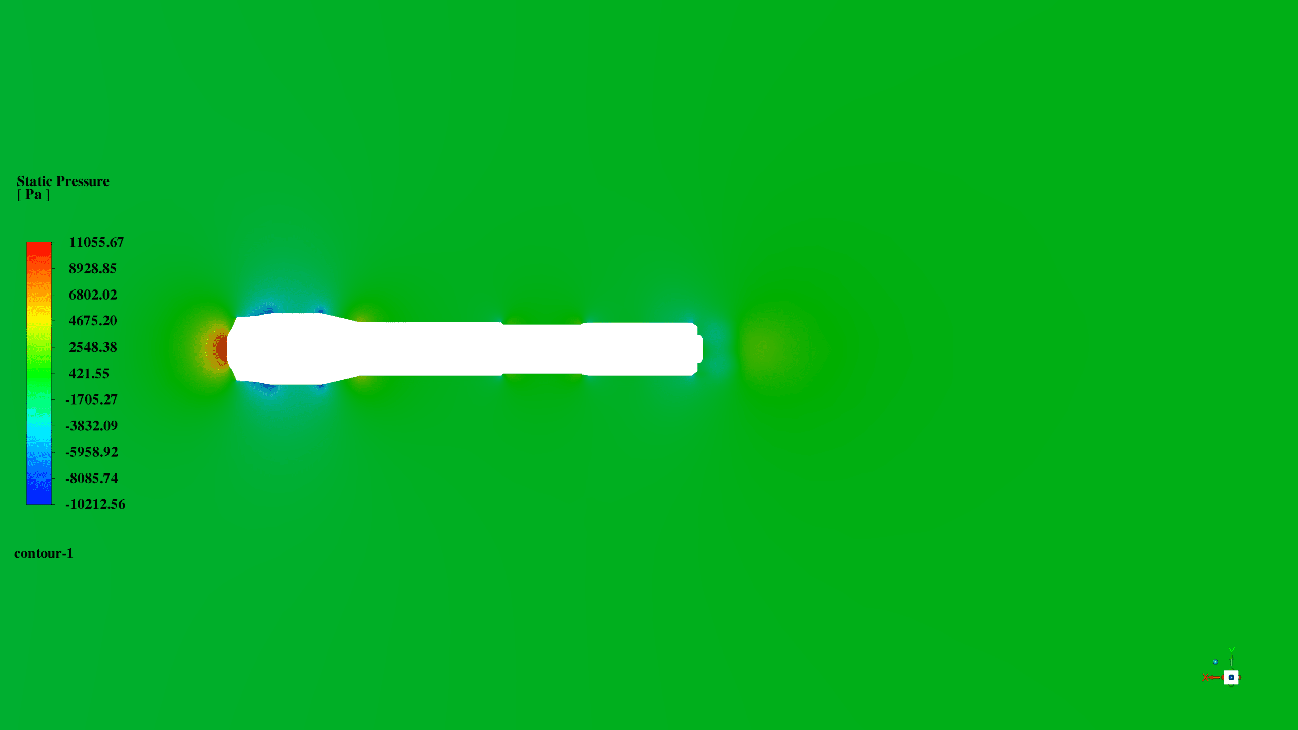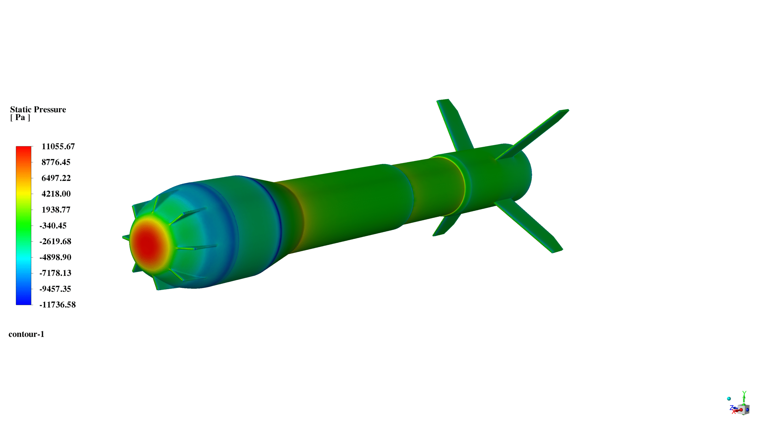 According to the contours below, the velocity and pressure in the areas around the NLAW as well as the pressure on the NLAW wall are clear. As can be seen, the velocity around it is higher, especially in the areas of the cap, and the pressure contours also confirm this.