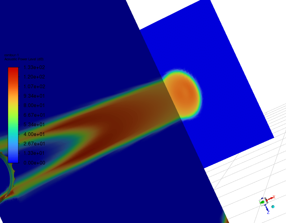 The noise generated by the jet flow shear layer comprises a broad range of frequencies. Consequently, the Broadband Noise Source model was utilized for modeling the generation and propagation of acoustic waves.