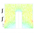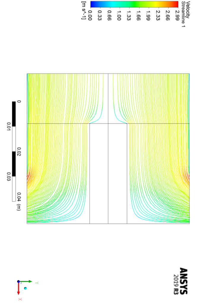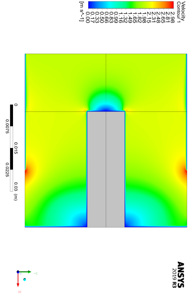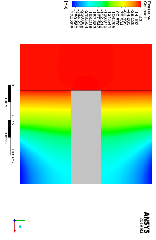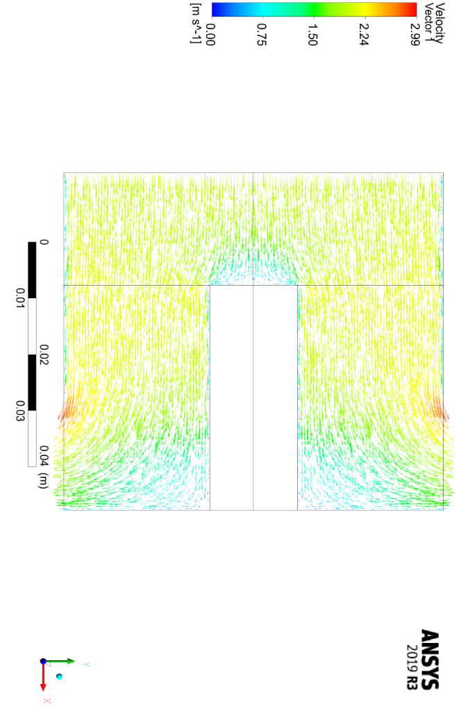 According to the article’s formula, the inertial resistance value is 1000.794 1/m. The porosity coefficient in a porous medium is equal to the ratio of fluid space to the total environment space, which in the present problem is equal to 0.87.