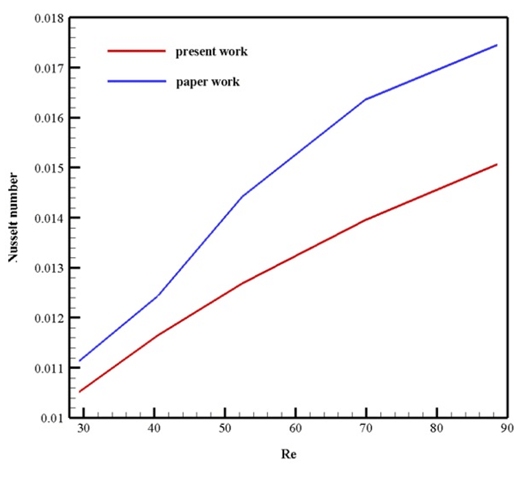 I’m impressed by how closely this CFD simulation aligns with the research paper’s results. Can you share some details on how the Nusselt number was accurately obtained in various Reynolds numbers conditions?