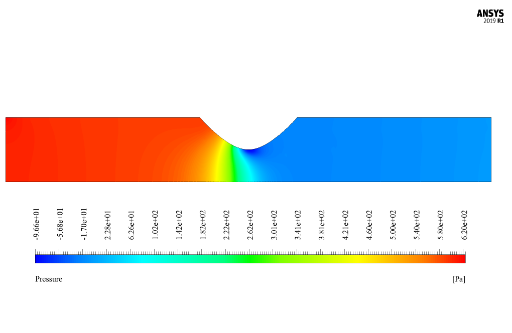 At the end of the solution process, we obtain two-dimensional contours related to pressure and velocity as well as diagrams of changes in pressure and velocity along the central axis of the model and diagrams of shear stress changes in the wall along the outer surface of the vessel wall.