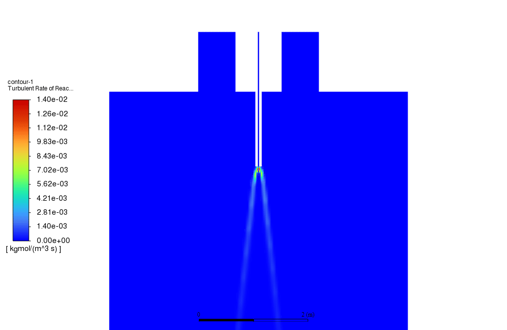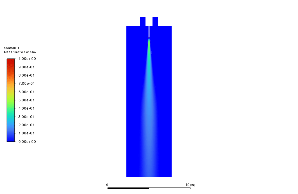 The present problem simulates the non-premixed combustion in a combustion chamber by ANSYS Fluent software. In the present case, it is assumed that the fuel and air enter the chamber from two separate boundaries and hence are considered Non-Premixed.