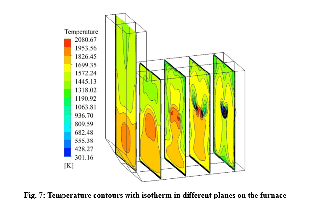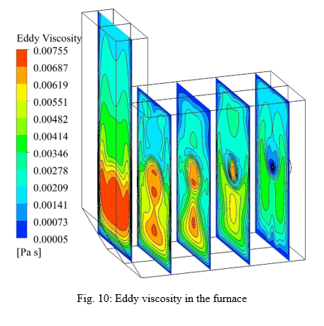 The standard k-e turbulence model is used to simulate the combustion process. The volumetric reaction has been performed by activating the diffusion of the energy source and the turbulence-chemistry interaction of the eddy dissipation type. The SIMPLE algorithm is used for pressure and velocity coupling in the solution method section. Least Squares Cell Based is also considered for discretization of gradients, Second Order for pressure and Second Order Upwind for other variables. The Under relaxation factors are arranged such that convergence has taken place to the desired extent.
