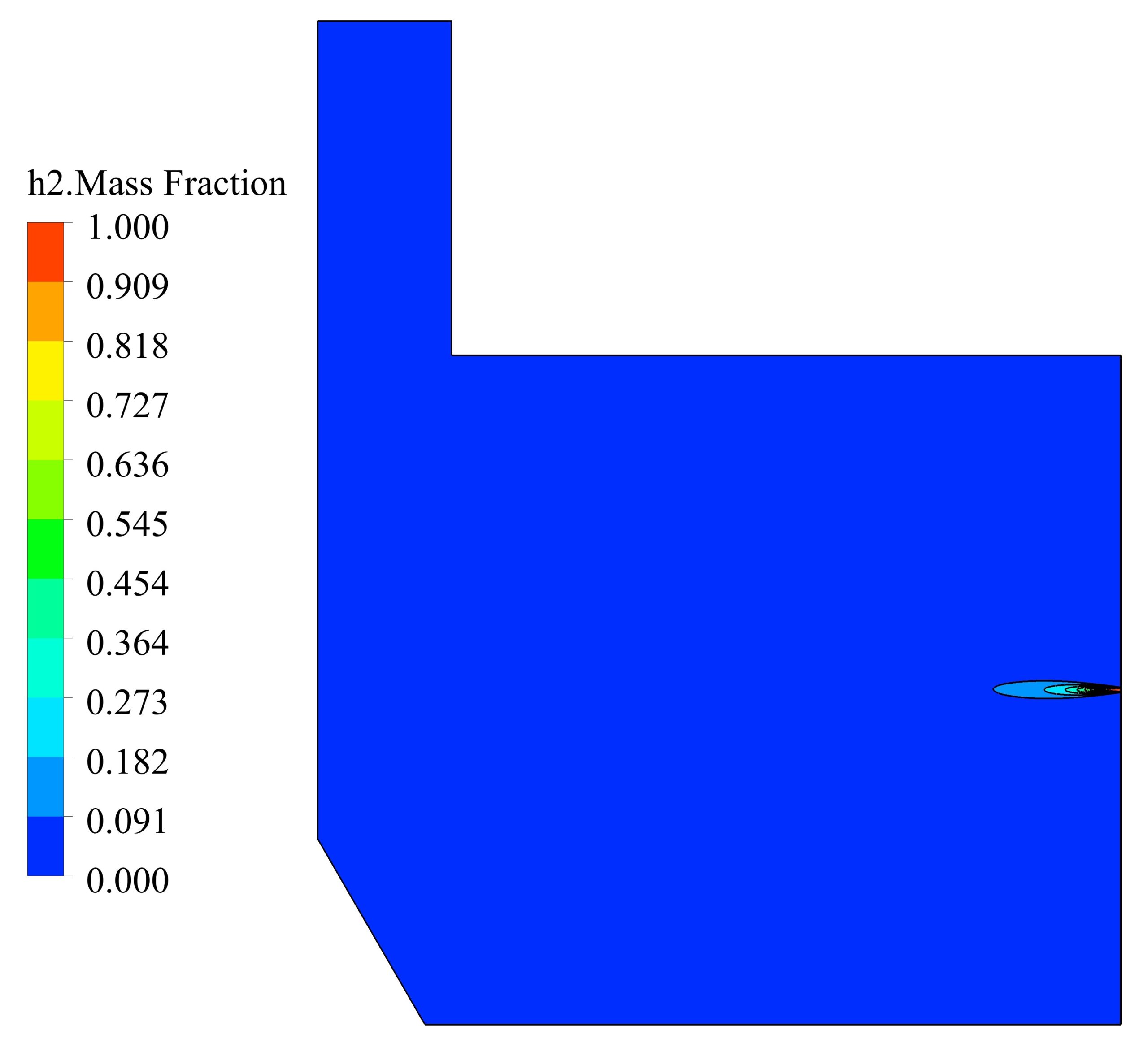 In this project, non-premixed hydrogen/air combustion in a furnace with laboratory scale or even semi-industrial dimensions is modeled by the eddy dissipation method. The eddy dissipation method is based on the fact that the process of species transfer in chemical reactions is done quickly. Therefore, the reaction rate related to the timescales of turbulent is considered. If the chemical reaction of fuel and oxidant molecules takes place in a large space with atmospheric pressure(such as furnaces), this method will be accurate enough to simulate their behavior and release energy source.