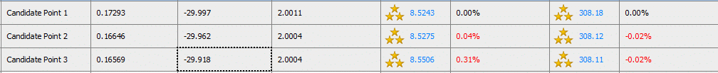 So this time, point #2 may be a better design point. Many points like these can be candidates for optimal design depending on our prior criteria. Considering all the input parameters and the targets, there is a tradeoff that should be analyzed carefully in order to find the optimal design.