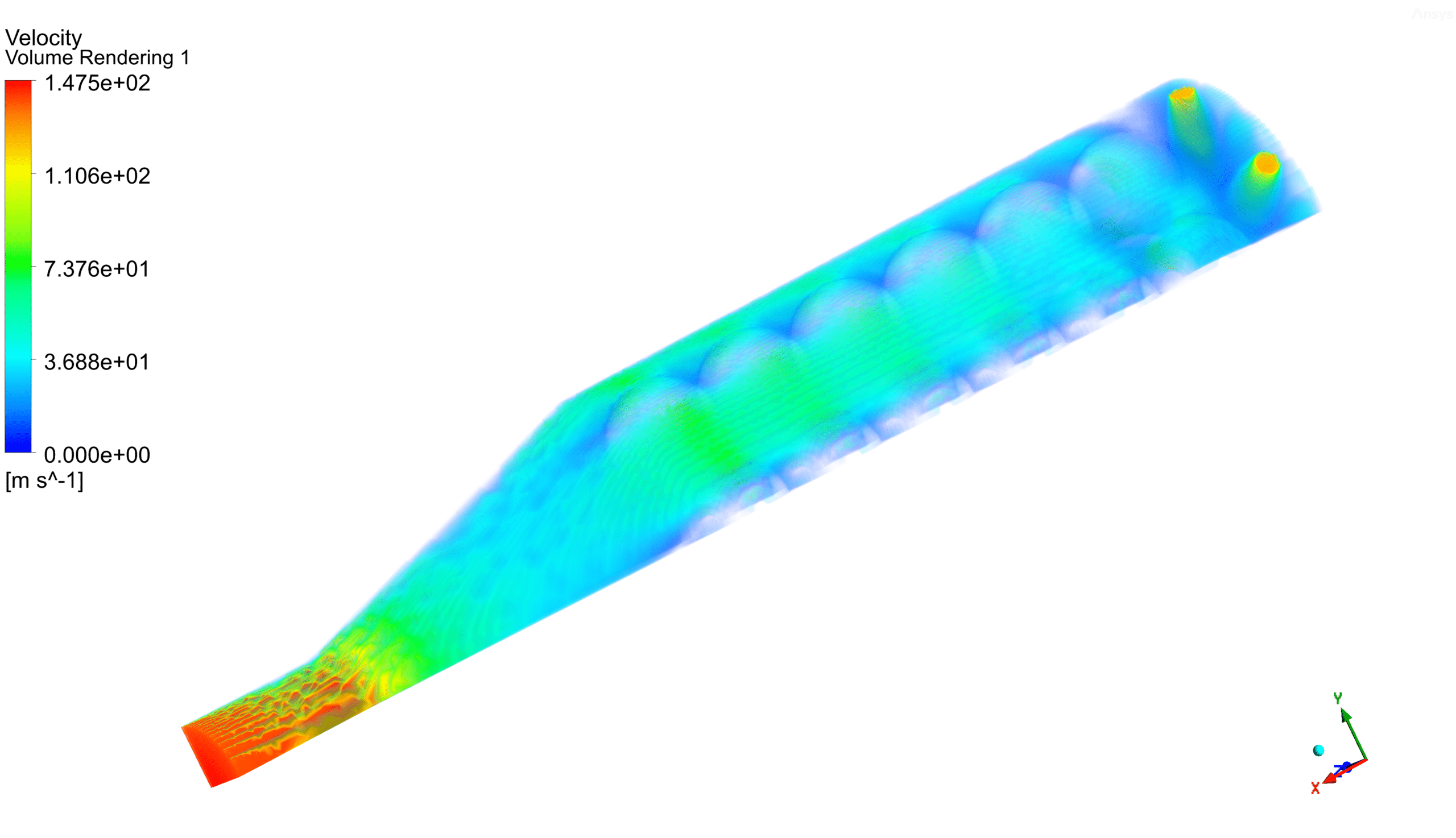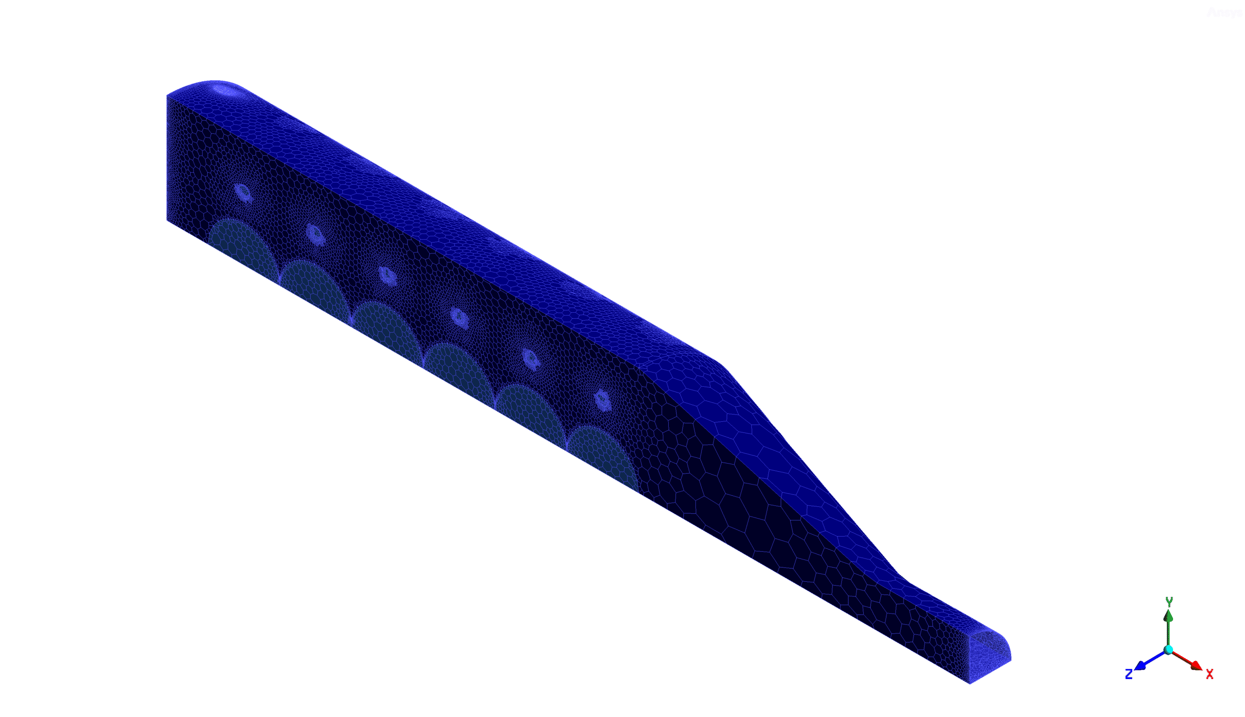 - The geometry is designed in Design modeler then meshed in ANSYS Meshing with 252,565 polyhedral cells.