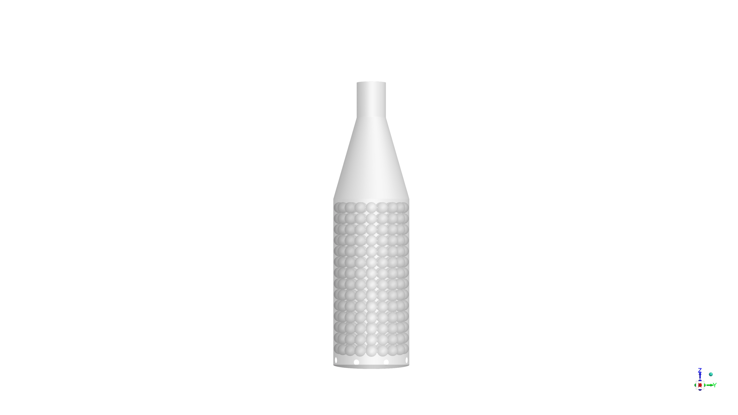 The packed bed reactor consists of a cylindrical vessel containing 14 layers of spherical particles made of quartz. These particles act as heat sources, generating a significant amount of thermal energy within the system. The study focuses on analyzing the temperature distribution, fluid flow patterns, and radiative heat transfer within the reactor, which are crucial for understanding and improving the overall performance of such systems.