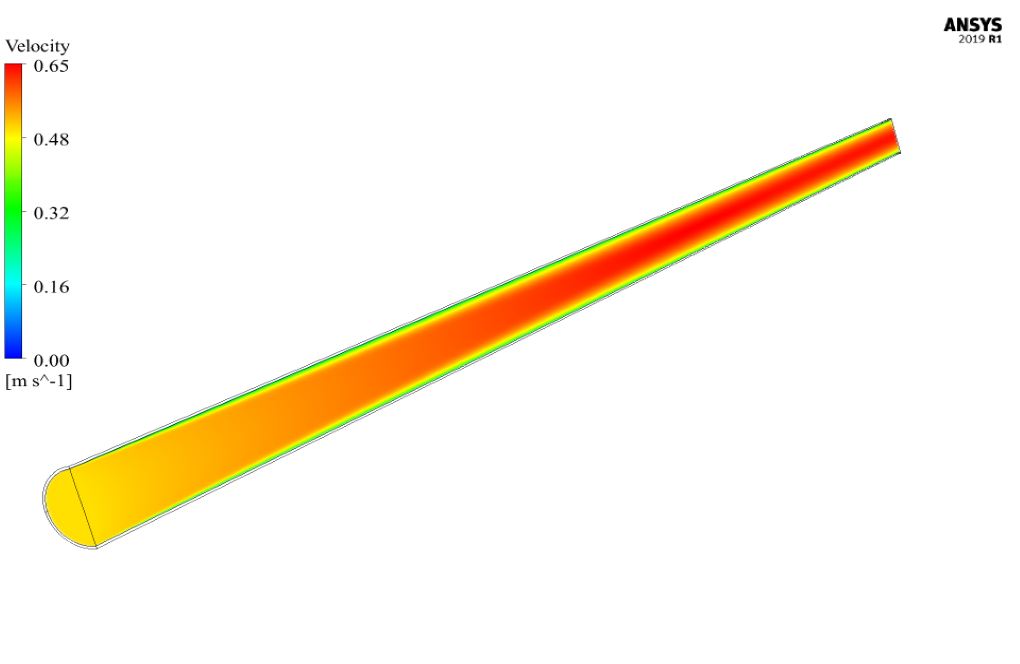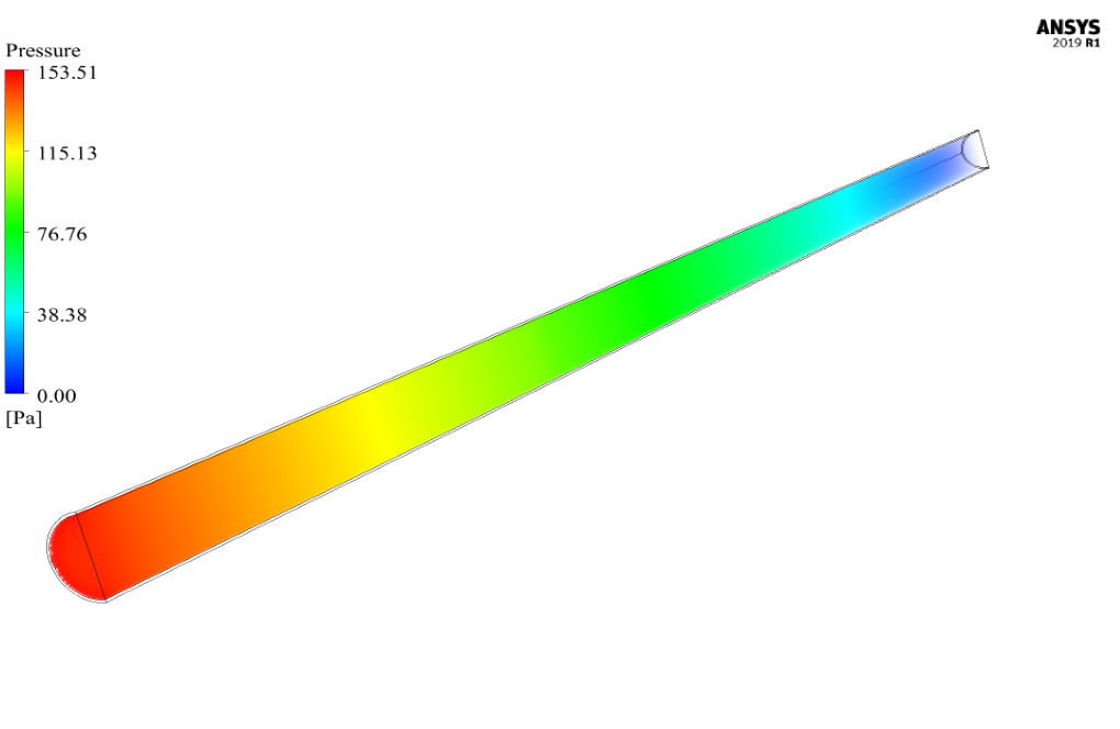 Due to its symmetrical structure, The tube consists of two parts, the thin outer layer which acts as the solid wall of the tube and the inner part which acts as the fluid conduit. The pipe has an internal diameter of 0.06 m and a length of 2 m, which has a thickness of 0.002 m.