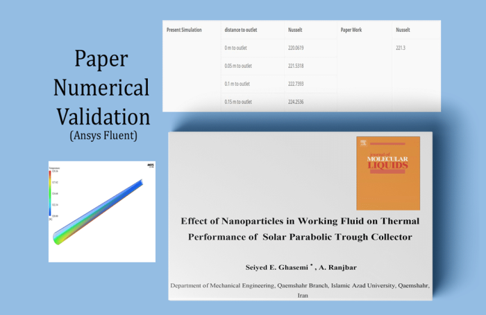 Thank you for the exceptional insight into the solar collector simulation with nanofluid. The methodology and conclusion were notably well-presented, helping me understand the importance of Nusselt number calculations for solar collector efficiencies. I’m impressed with how well the work was validated against the reference paper, ensuring credibility and thoroughness.