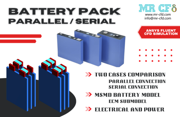 - This product numerically simulates the Parallel and Serial Battery Pack using ANSYS Fluent software.