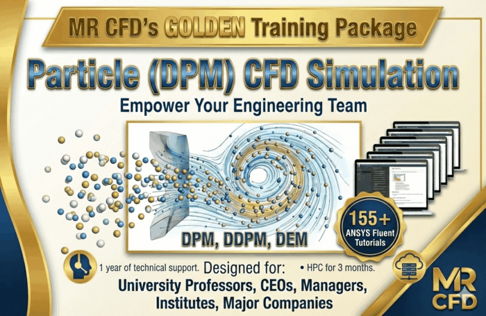 Empower your engineering team with MR CFD’s extensive “Particle (DPM) CFD Simulation GOLDEN Training Package.” Designed for university professors, CEOs, managers, institutes, and major companies, this collection of more than 155 ANSYS Fluent tutorials turns beginners into proficient users, ready to tackle projects in advanced Particle (DPM) Analysis, DDPM, DEM, and beyond.