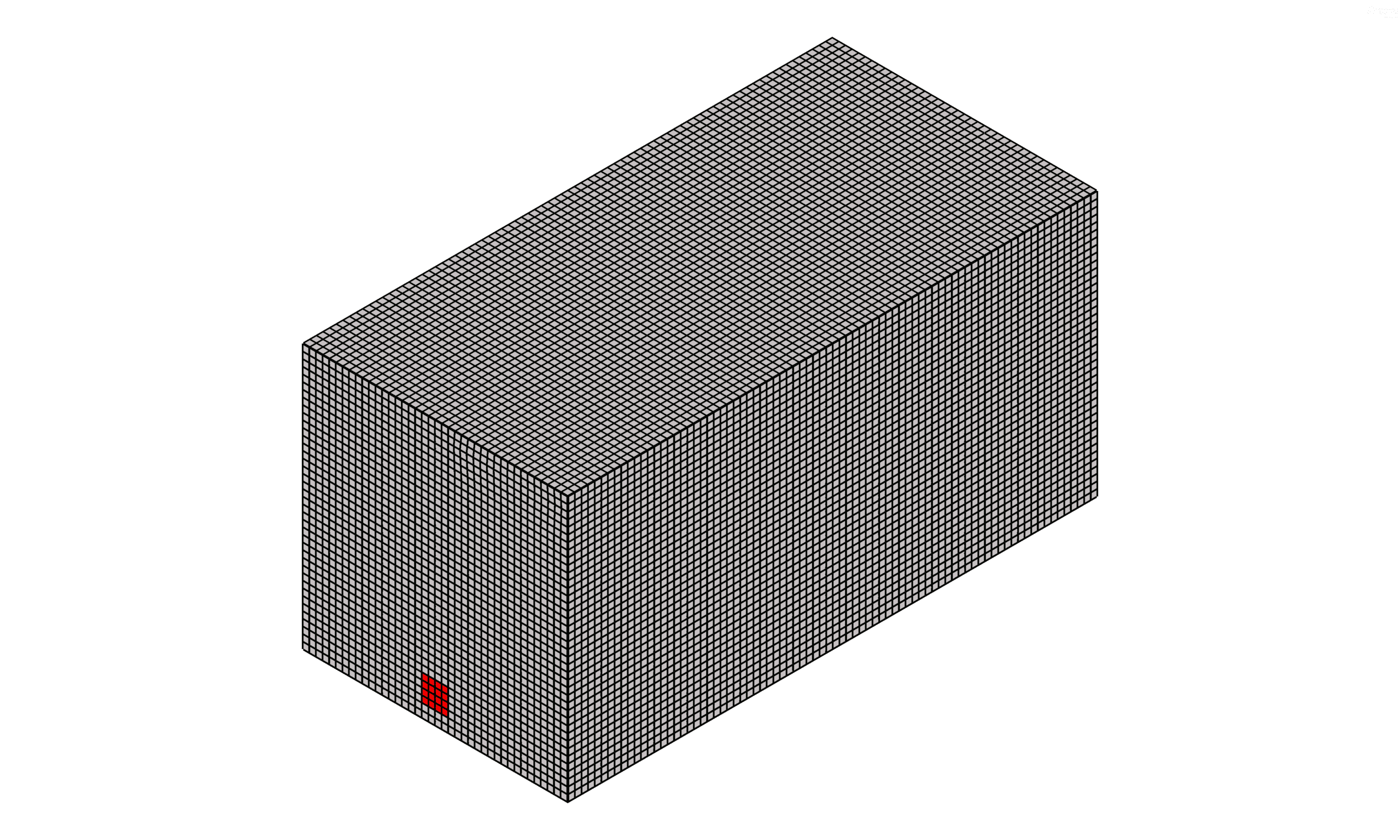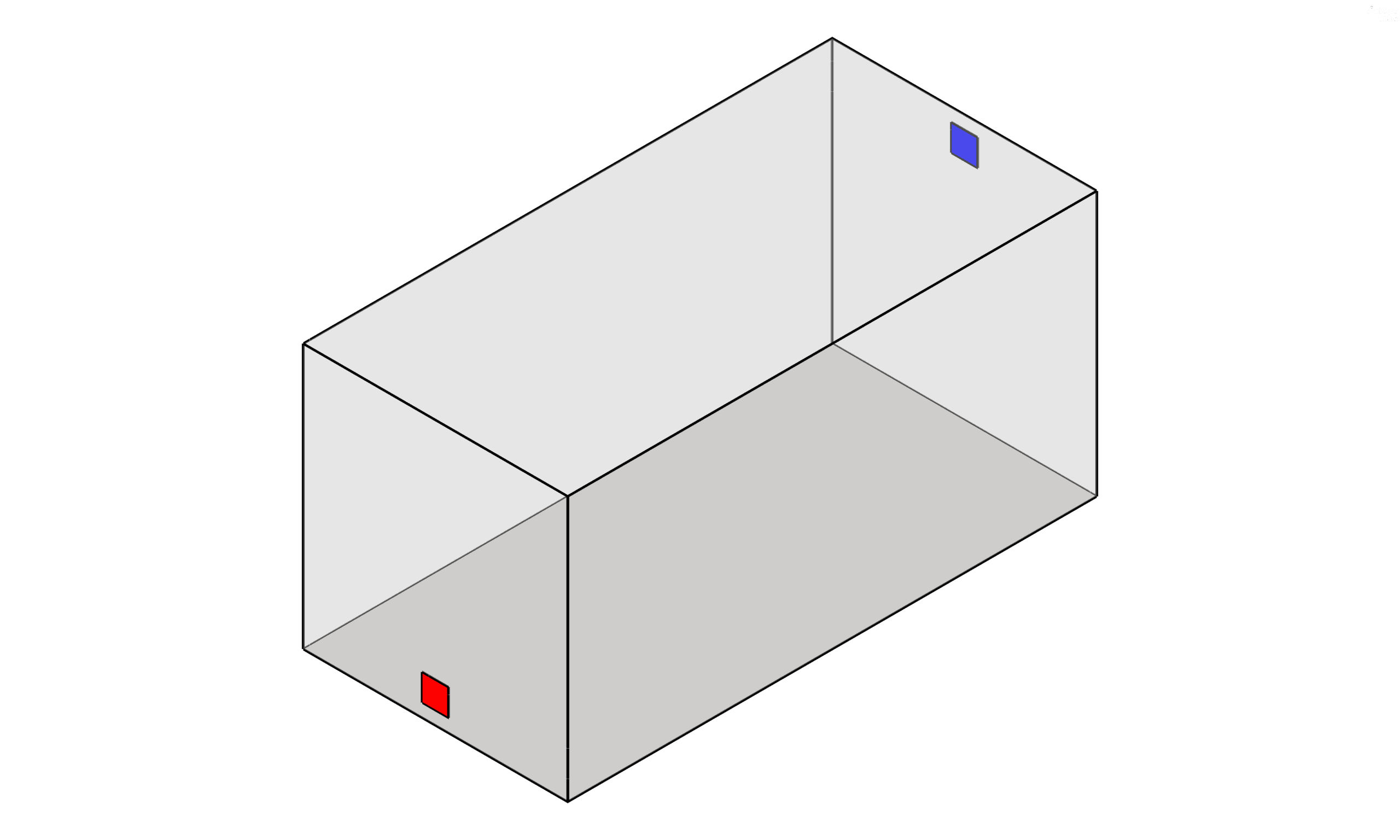 The room’s geometry for validation was created by the Design Modeler software. The validation case, along with its details, will be presented. The simulation consists of a room with dimensions of 0.4m × 0.4m × 0.8m (width × height × length) that has one inlet and one outlet, both with a size of 4cm × 4cm. Then, the geometry was imported into the Ansys Meshing Software, generating 128,000 cells within this software.