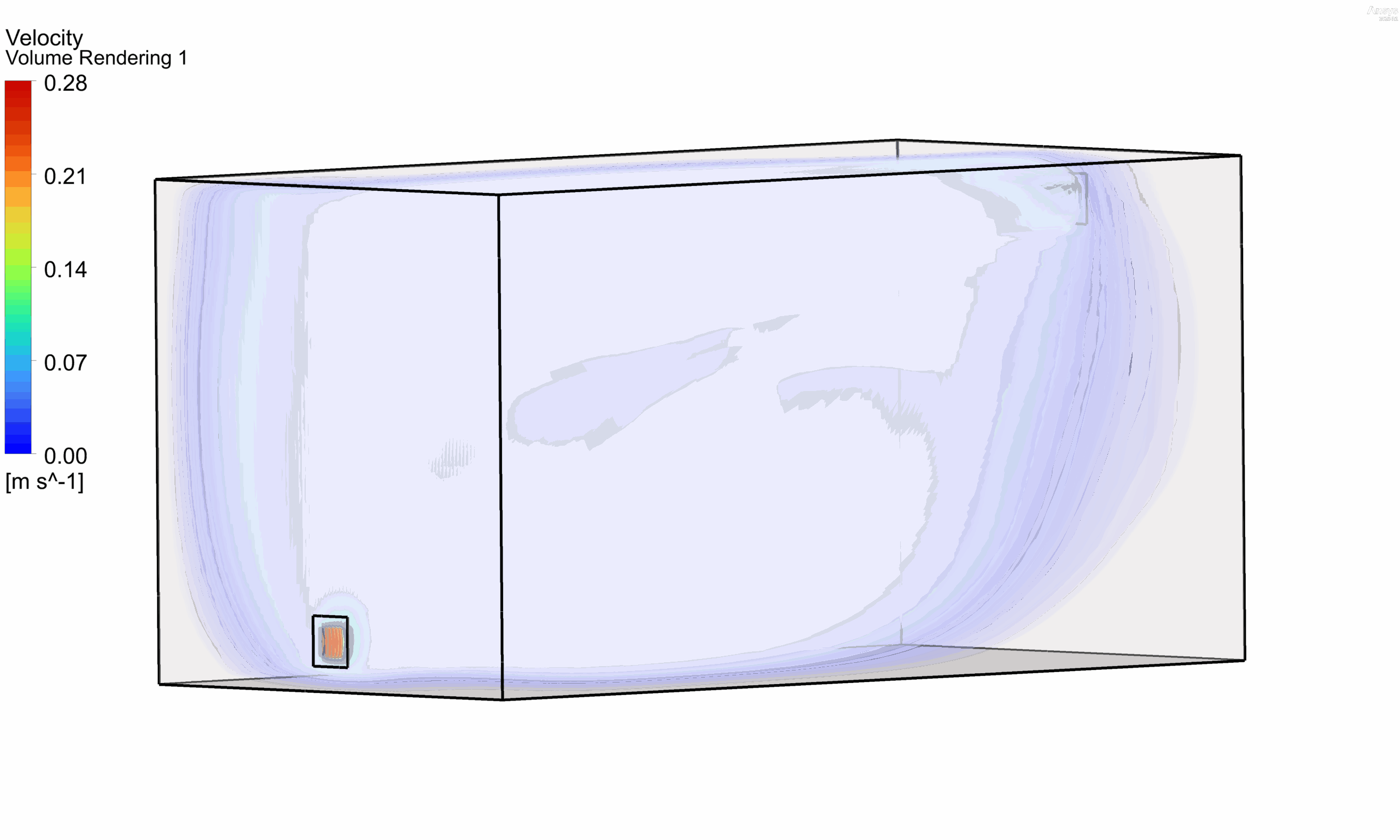 - We designed and meshed the room geometry in Design Modeler and ANSYS Meshing, generating 128,000 cells.