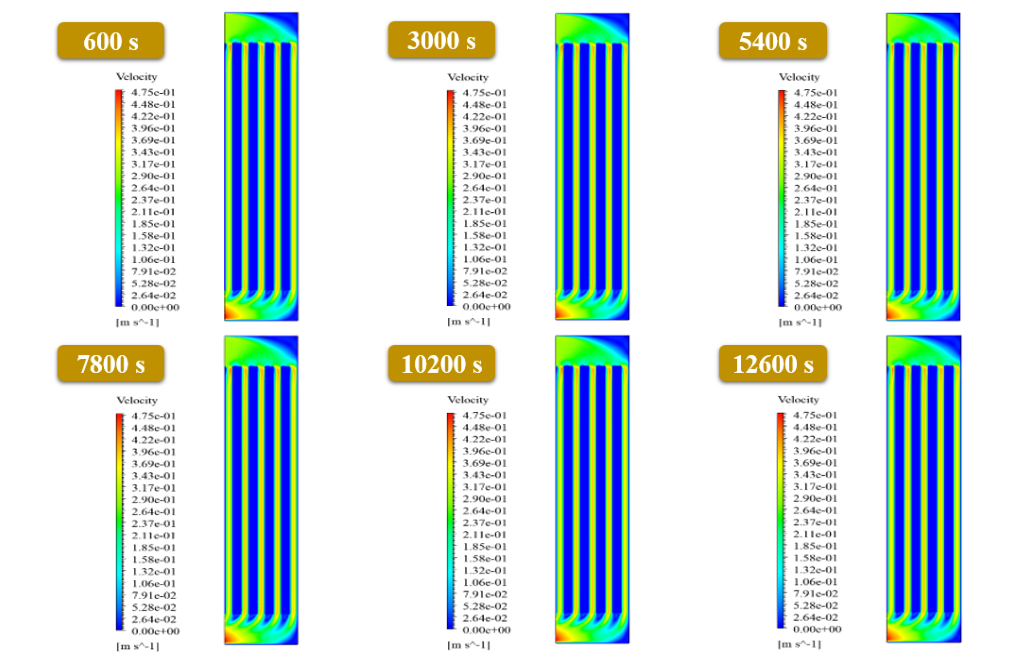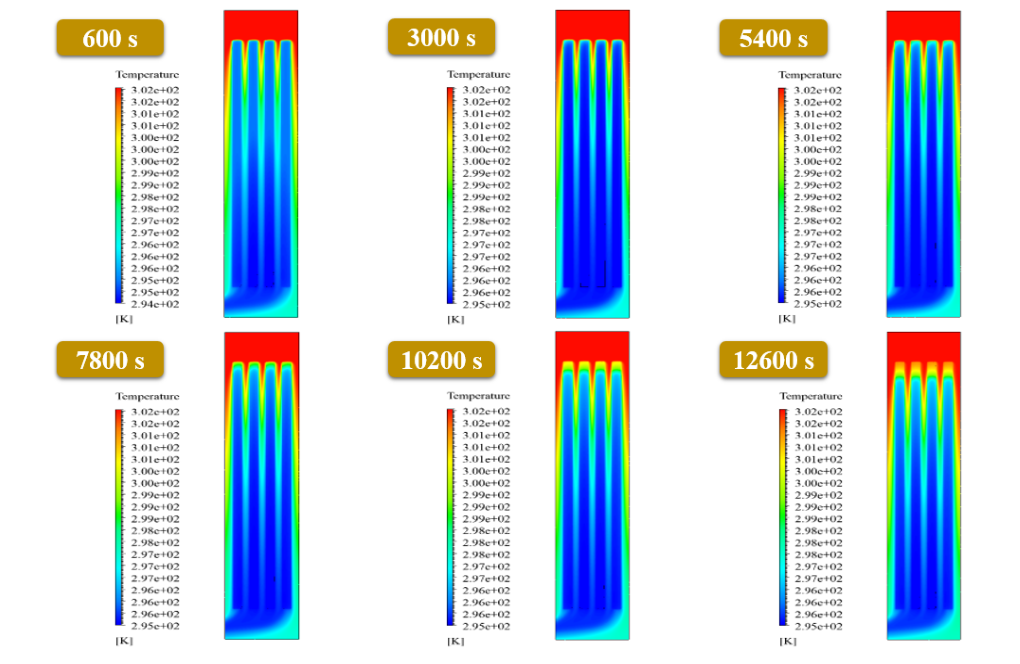 Given that the phase change material’s working process is time-dependent, the transient solver is used, and the results are obtained at different times of the simulation process to get the results over time.