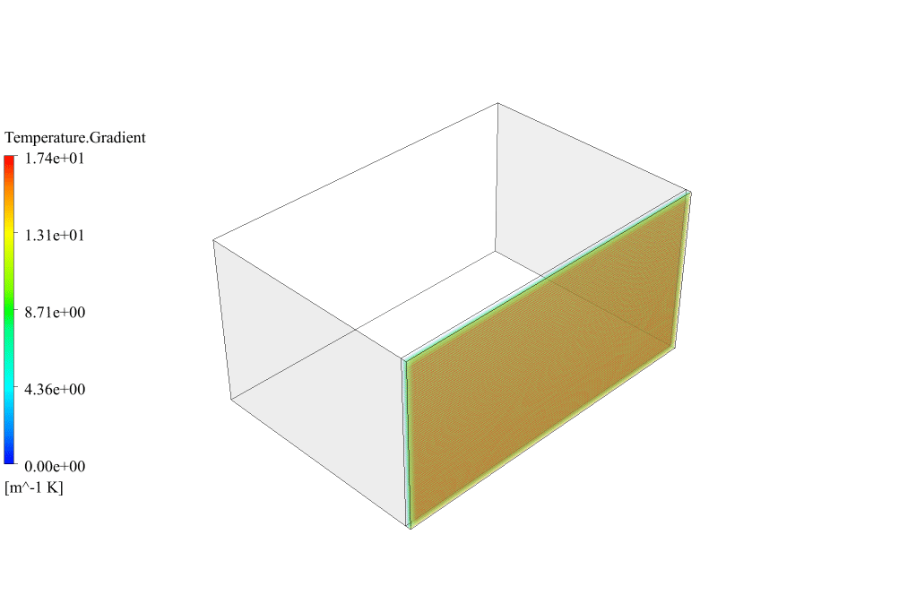 - We only investigated a room’s natural convection heat transfer in the first step. We assumed that one of the walls had a constant heat flux. This heat is derived from the warm air of the surrounding environment and the radiation of solar rays.
