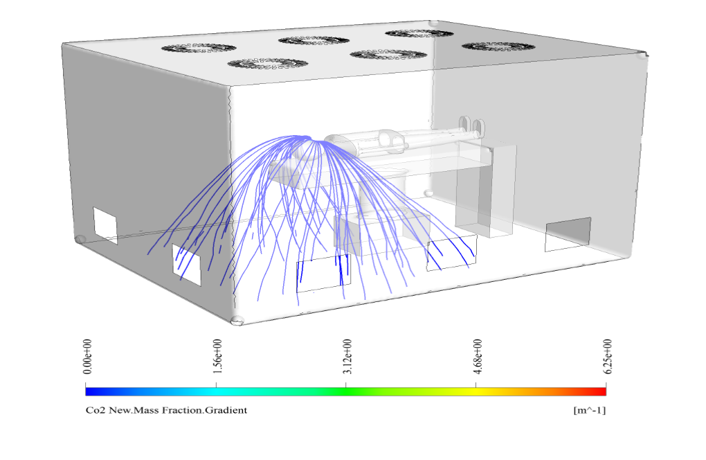 - We use the Species Transport Model to define oxygen, carbon dioxide, etc, for air conditioning applications.