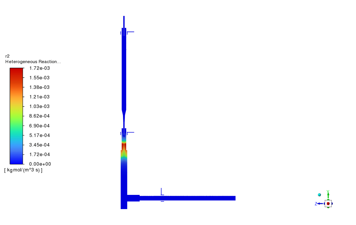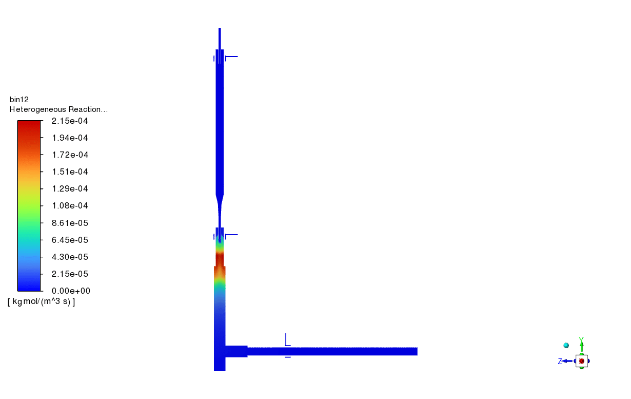 - The Species Transport Model with finite-rate Arrhenius kinetics is used to simulate the reduction reactions.