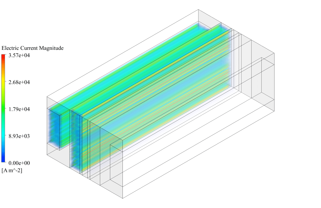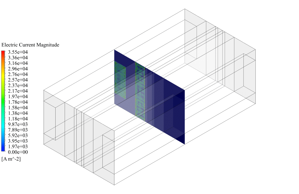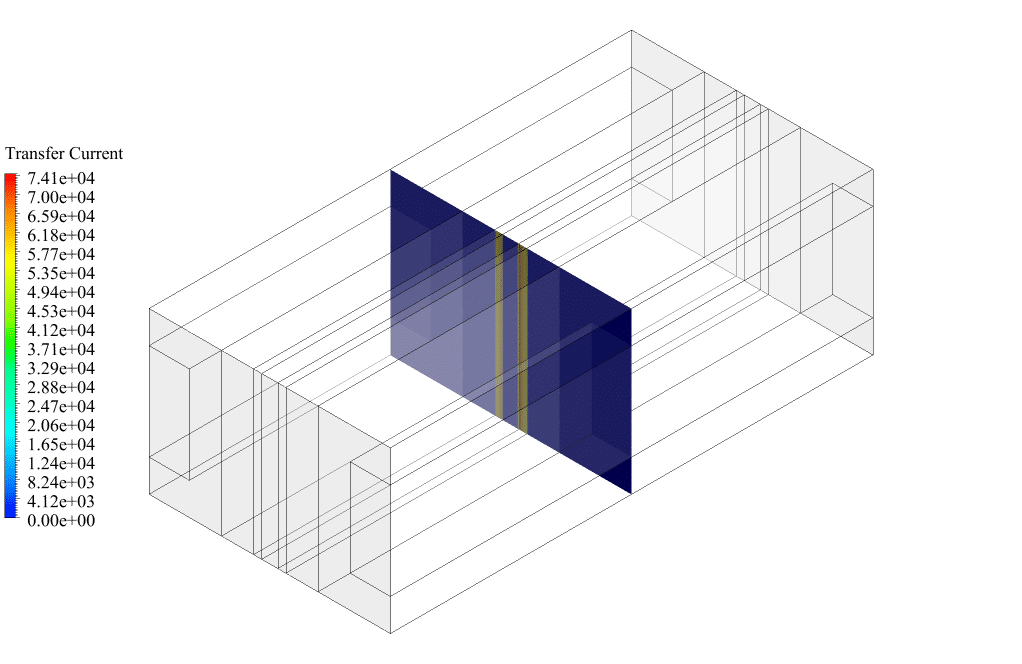 After conclusion, we have obtained the contours related to current flux density magnitude, transfer current, volume fraction of water, and mass fraction of H2 and O2. The contours of water volume fraction and H2 and O2 mass fraction show that water enters from the anode side, oxygen is produced on the anode side, and hydrogen is produced on the cathode side. This behavior is exactly according to the operating mechanism of the PEM electrolysis system. Therefore, we conclude that we performed the electrolyzer simulation correctly.